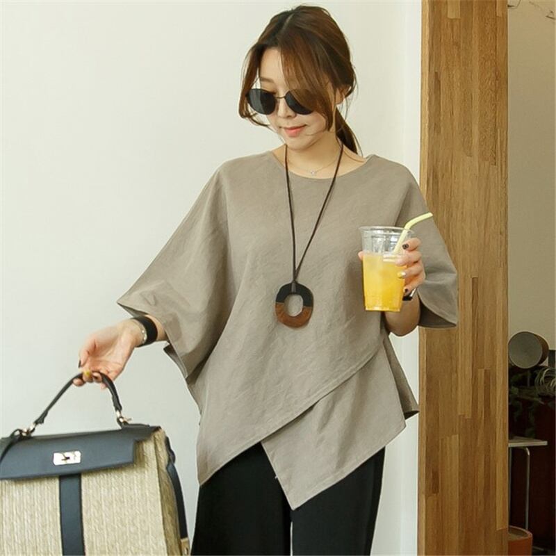 不規則な裾の綿とリネンのシャツの女性の夏ルーズスリム半袖シャツレトロ薄いセクションリネントップ女性 コットン サマー 夏物 cat869582373537