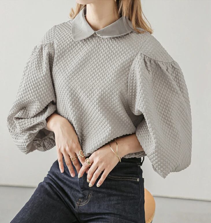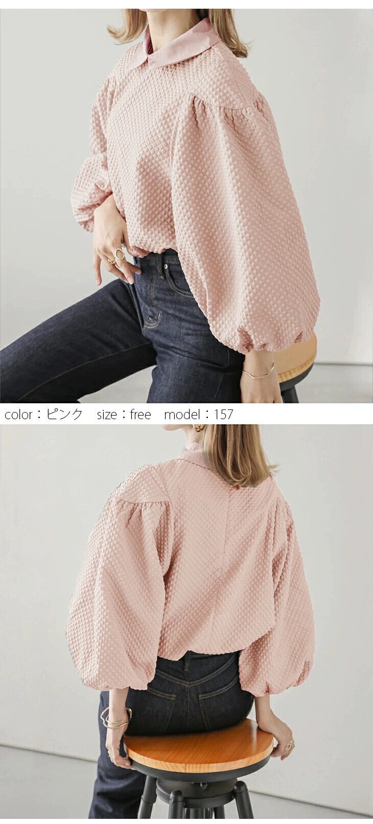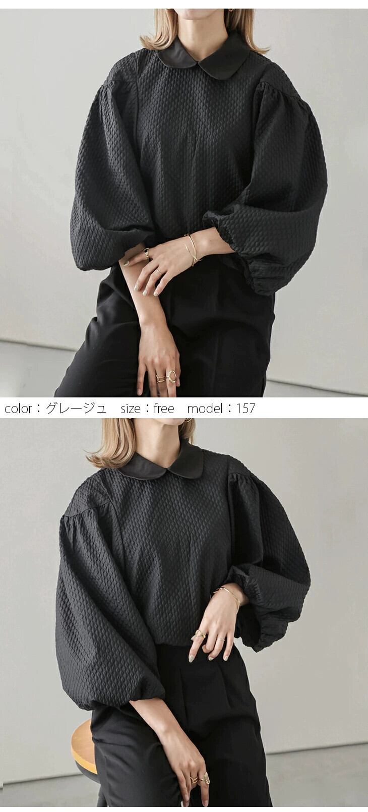 ロッテ春の新しい ese シャツ女性ランタンスリーブ無地ラペルプルオーバールーズドールシャツ甘いトップ女性 大人ガーリー スウィート キュート カジュアル スプリング 春物 ソリッドカラー cat860001418385