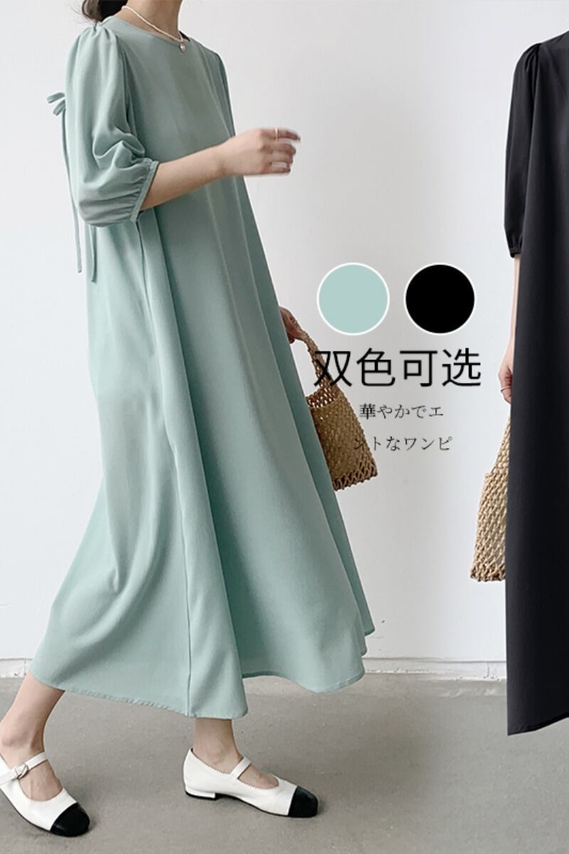 Real s 2023 ese and new style レイジールーズ 5 分袖シフォンドレス、バックタイと 5 分袖 cat812402509425