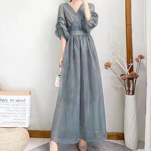 2022 夏の新婦人服ピュアカラー膝上のロングドレススリムフィットとスリムな気質スーパーフェアリーネットガーゼロングスカート女性 サマー 夏物 cat889176163833