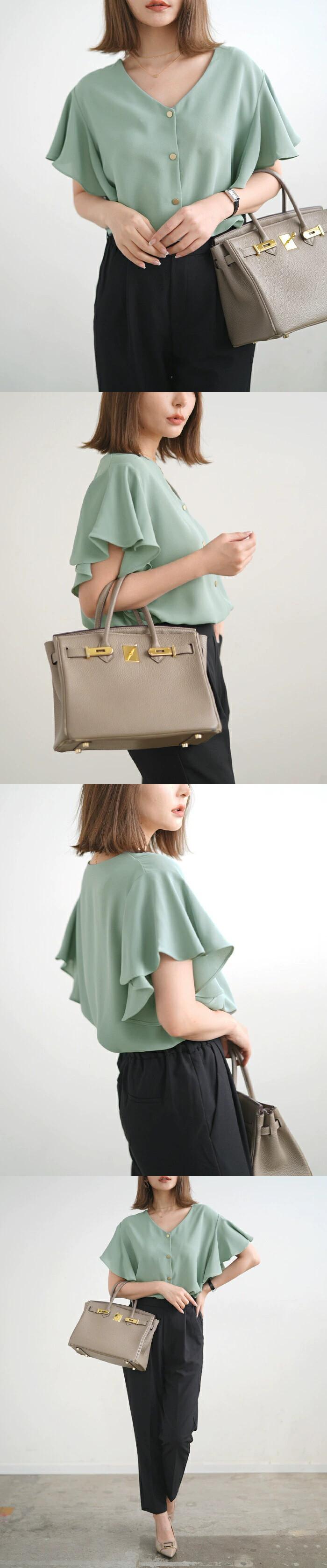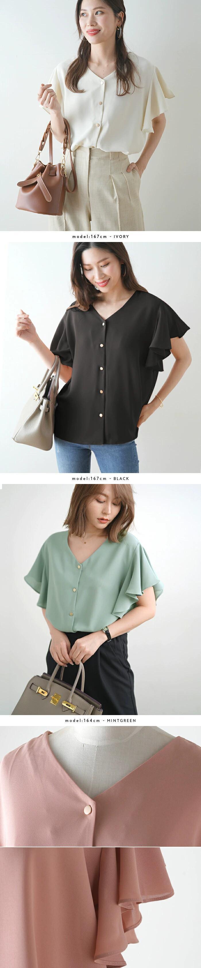 国境を越えたeign trade eseルーズスイートスモールフレッシュソリッドカラーVネック蓮の葉フェイフェイ半袖シフォンシャツトップシャツ 大人ガーリー スウィート キュート カジュアル cat848878894601