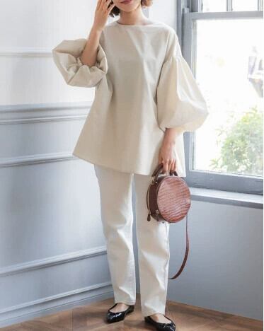 ロッテ製品と南夏ゆったり大きめレディースシャツコットンオーバーサイズランタンスリーブラウンドネックトップ サマー 夏物 Oネック cat852085223832