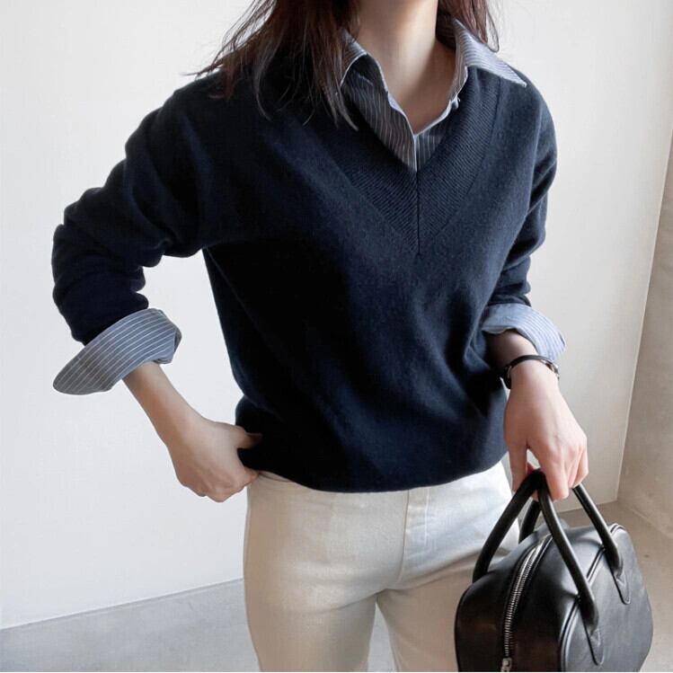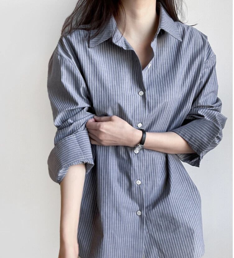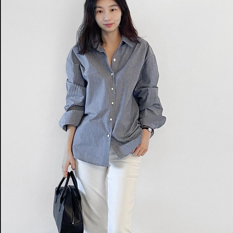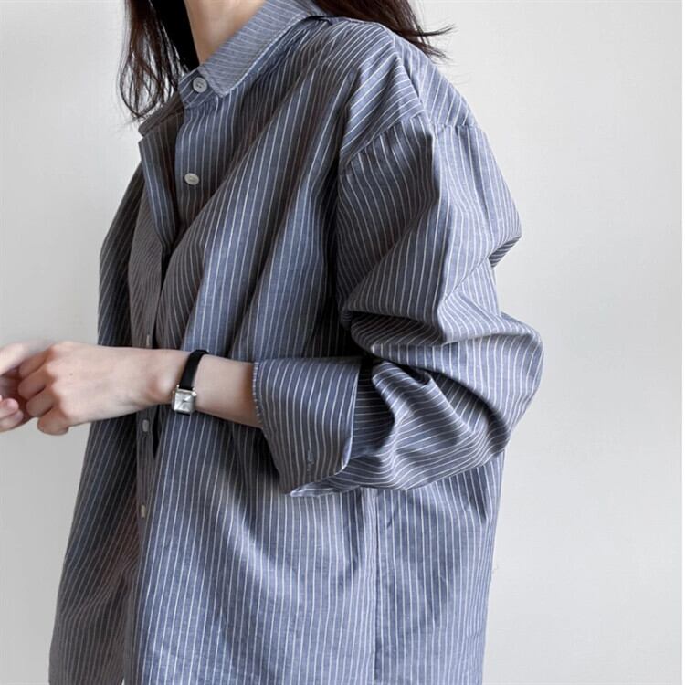 ins2023初春新商品ルーズカジュアル通勤アート長袖ストライプシャツオールマッチカジュアルトップス ロング スプリング 春物 cat84940003327