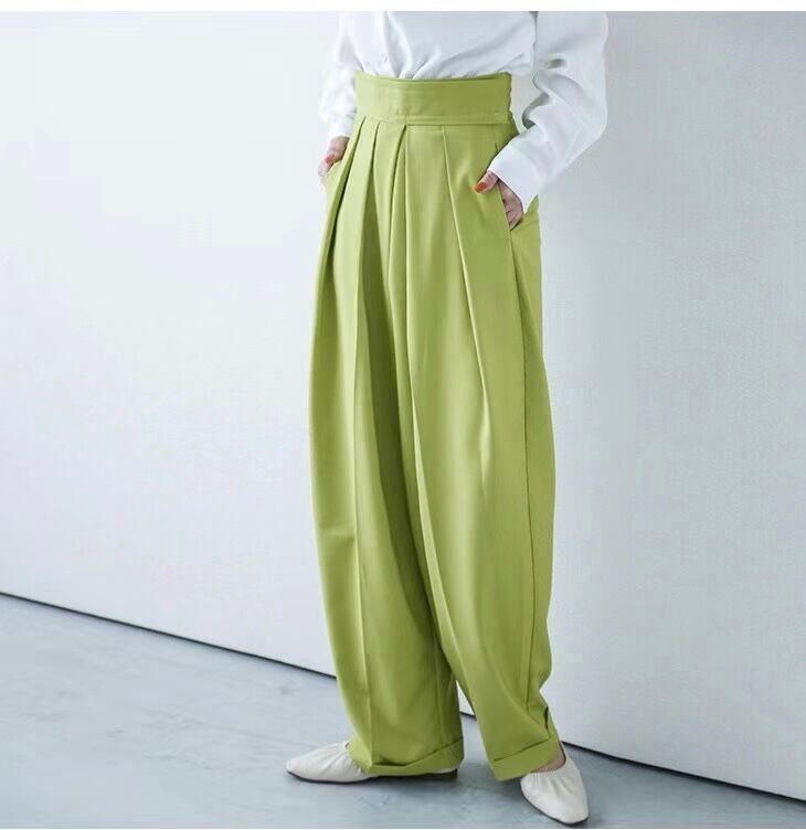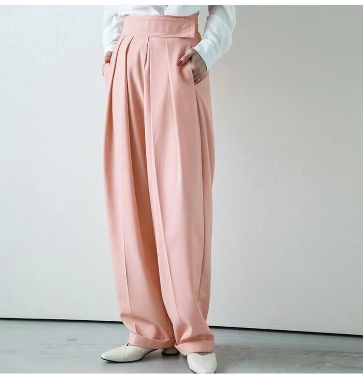 ベルクロスーツパンツのバージョンの女性のデザインセンスニッチストレートルーズカジュアルモップパンツハイウエストドレープワイドレッグパンツ ハイウェスト ワイドパンツ cat838276400125