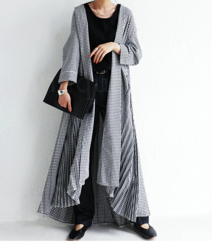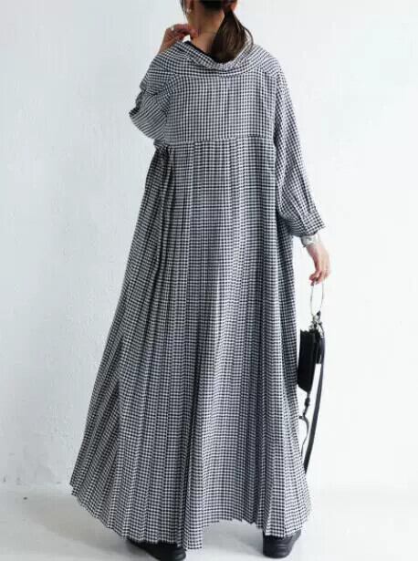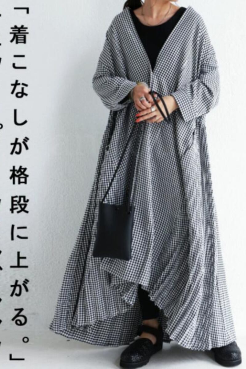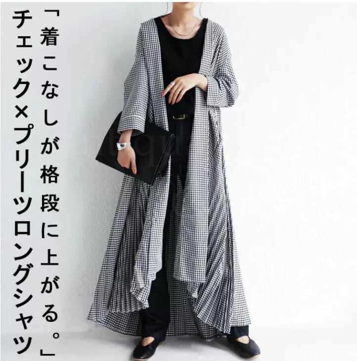 スポット2023夏スタイルチェック柄プリーツロングシャツワンピース サマー 夏物 cat893407148424