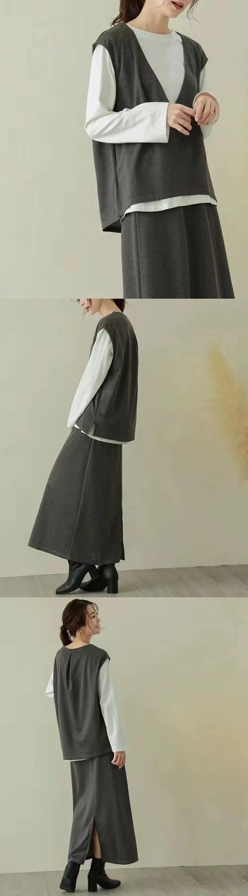 2023 新しい ese スタイルルーズベストスカートツーピーススーツシンプル cat885168794822