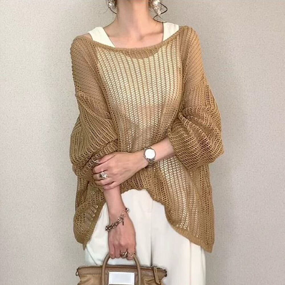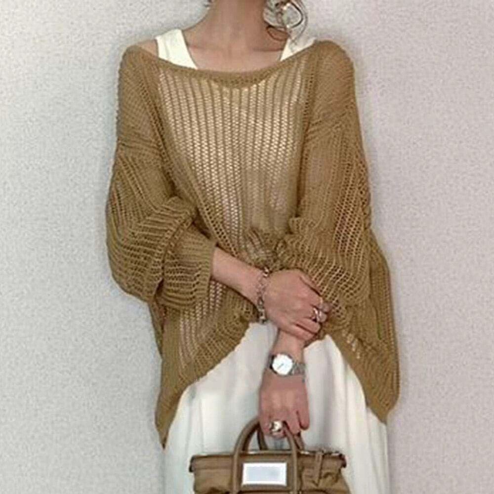 スポット ese と新しいブラウス女性の夏緩い大きいサイズ氷のシルク中空ニットセーター春と秋のアウタートップ 大きめサイズ スプリング 春物 サマー 夏物 オータム 秋物 cat839330830508