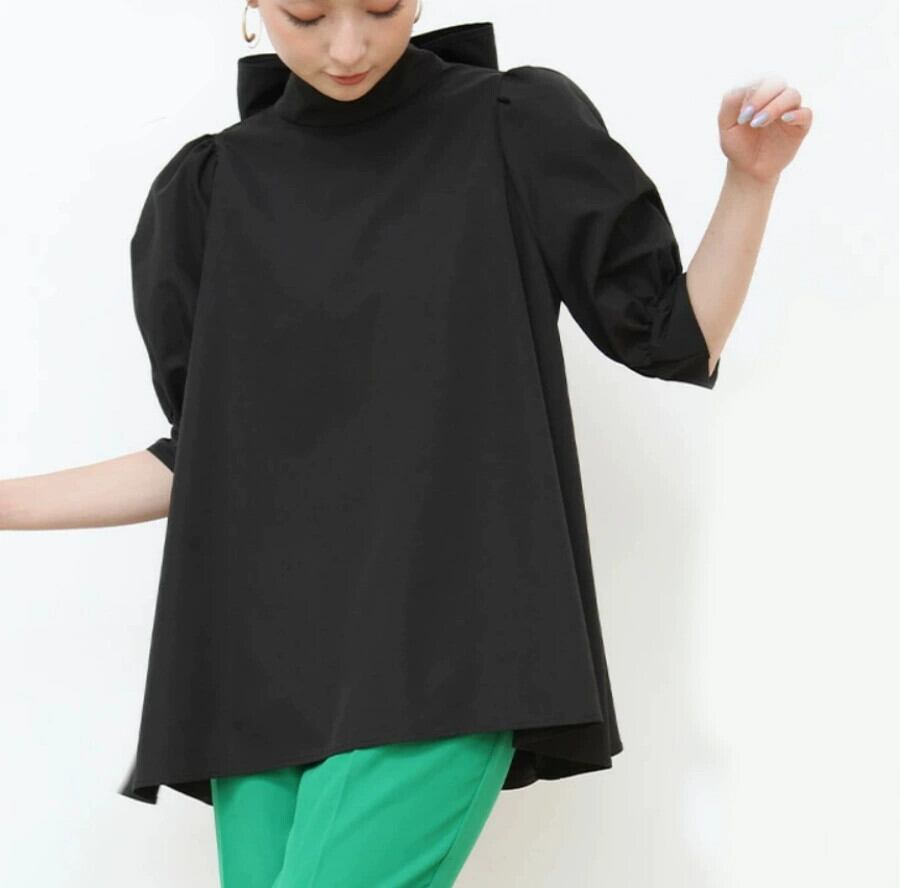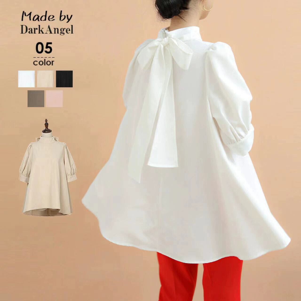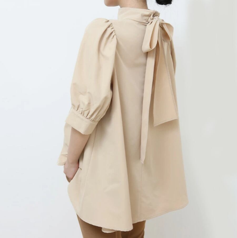 ボーダーロッテ風春夏新作レディース長袖OL通勤風エレガントトップスボウリボン付きスタンドカラーシャツ ロング スプリング 春物 サマー 夏物 cat822929671241