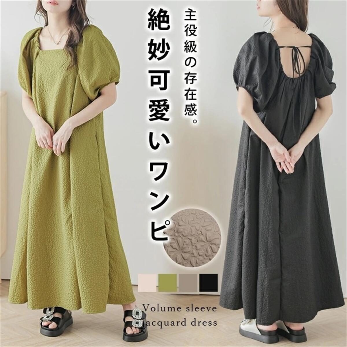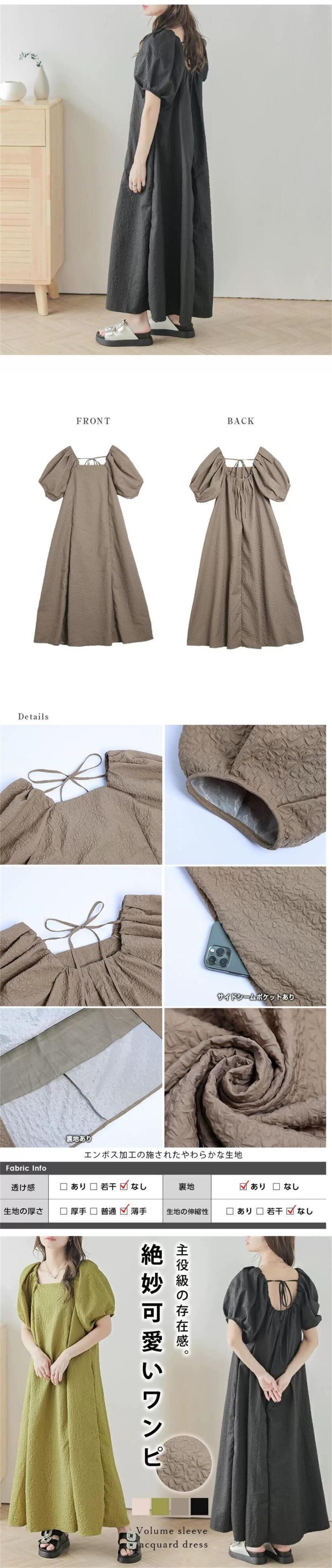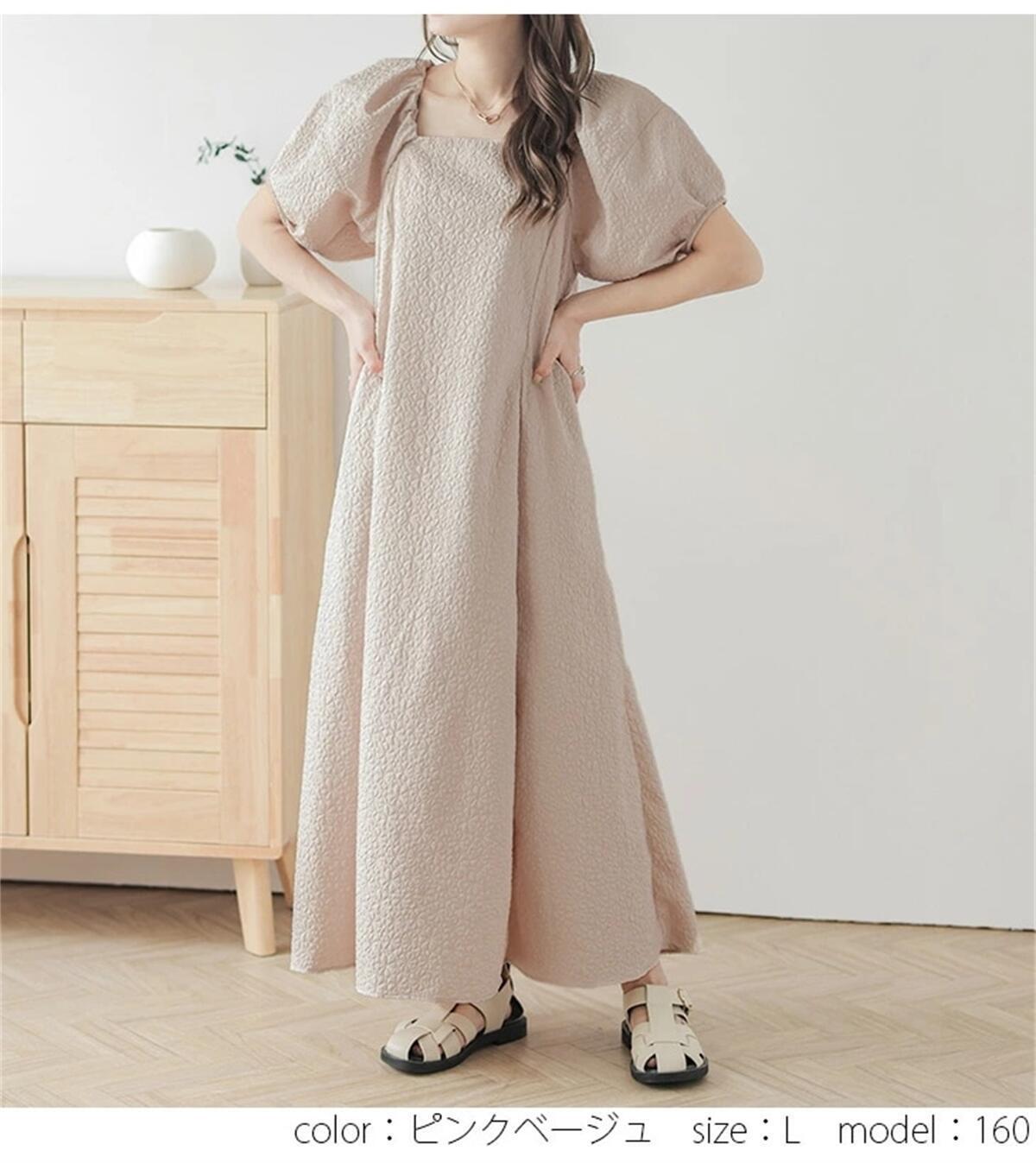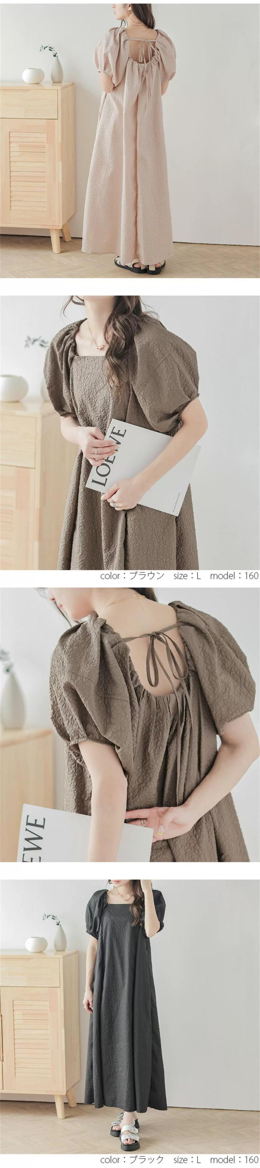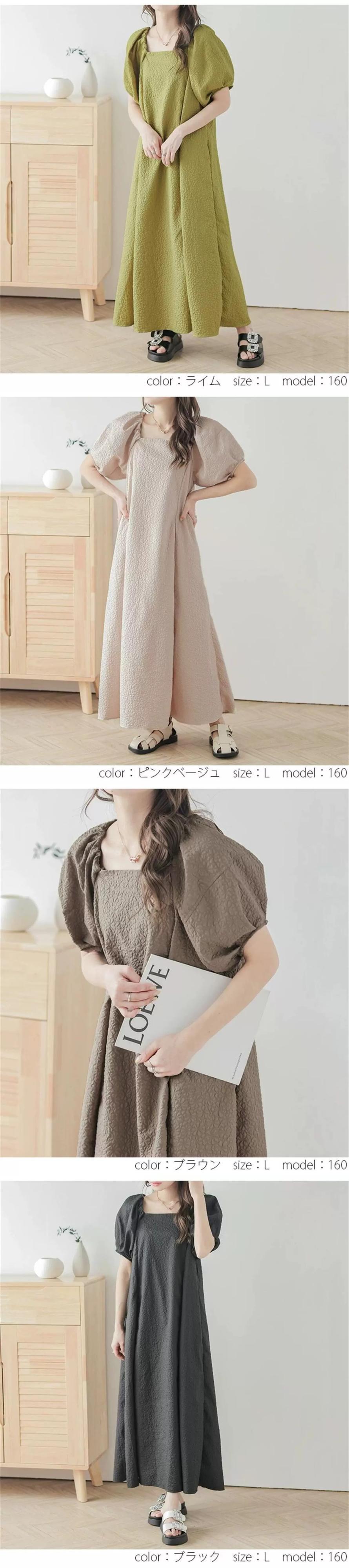 ロッテセール ese アンド スタイル怠惰な風シンプルなエンボス加工のドレスの女性の夏の新しいスクエアカラープレスプリーツパフスリーブスカート サマー 夏物 スクウェア cat878529686493