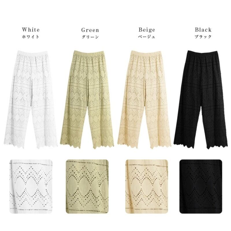 デイシングル春、夏、秋フェンリジア中空フックフラワーレース弾性ウエストストレートワイドレッグ速乾吸汗カジュアルレギンス エラスティック 伸縮 スプリング 春物 サマー 夏物 オータム 秋物 ワイドパンツ フラワーデザイン cat837125321330