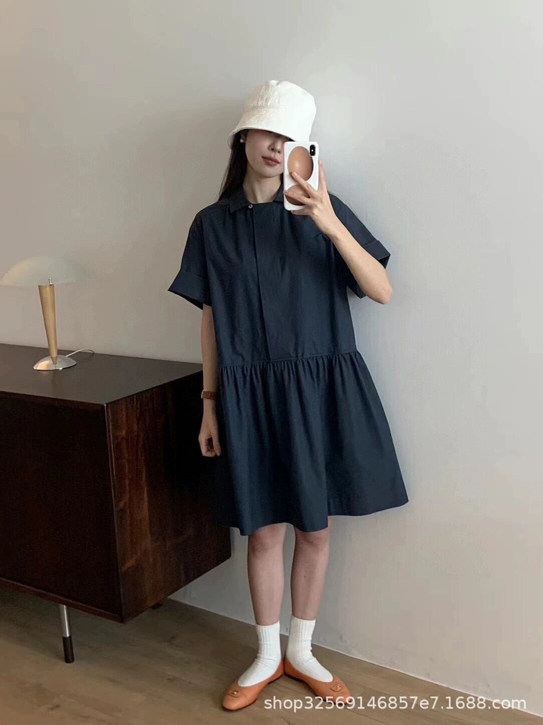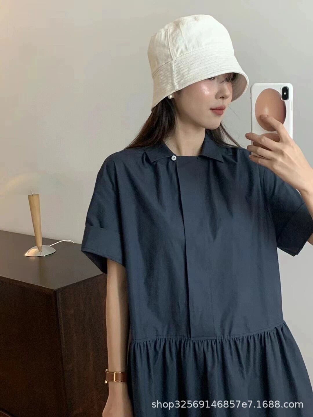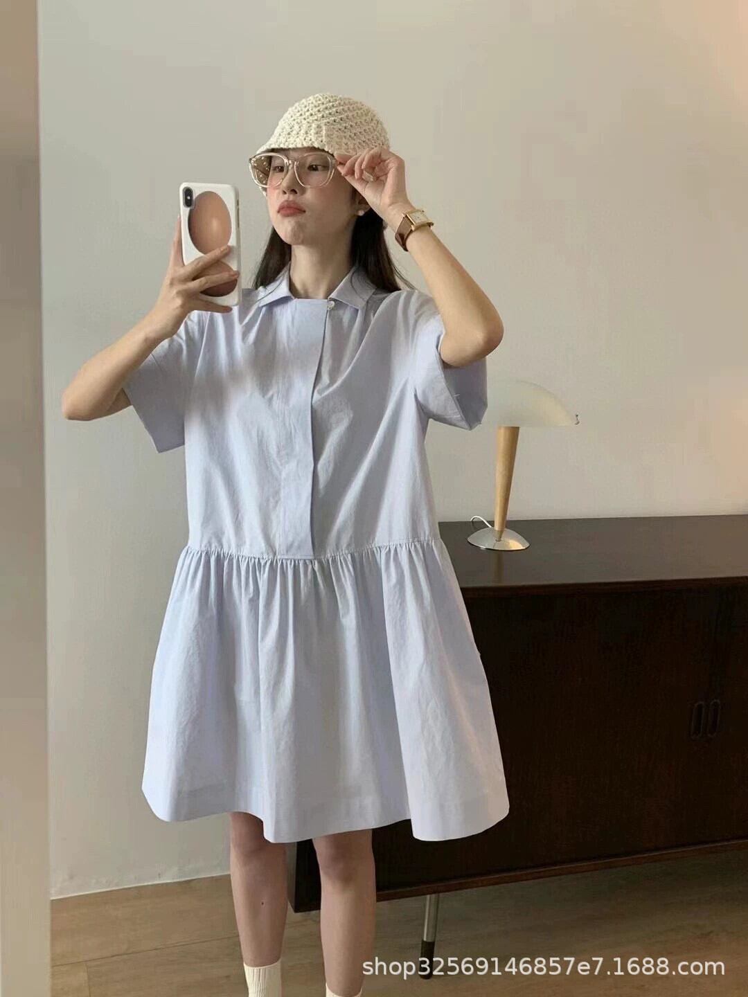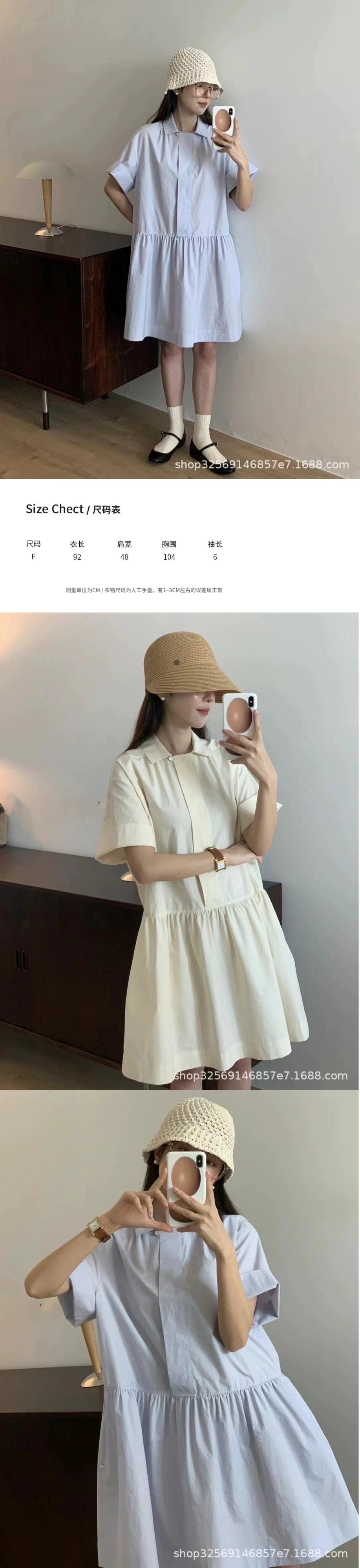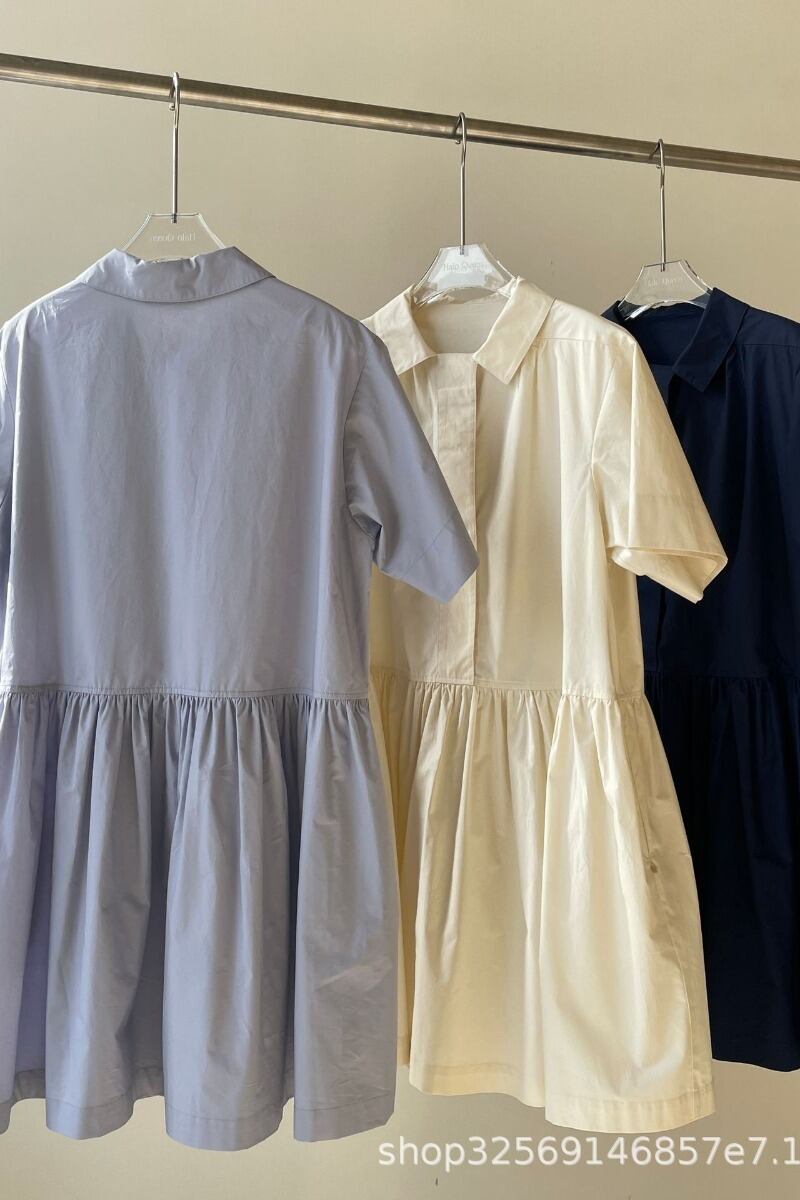 ESEと夏の新しいシンプルカジュアルラペル半袖かわいいショートスリムシャツドレス 大人ガーリー スウィート キュート サマー 夏物 cat897302944693