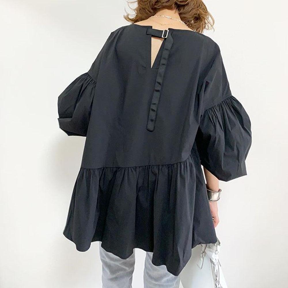 越境アマゾン ese 長袖シャツ レディース 春と夏 無地 ルーズ ランタン スリーブ シャツ フリル プルオーバー トップ ロング ランタンスリーブ スプリング 春物 サマー 夏物 ソリッドカラー cat811629352981