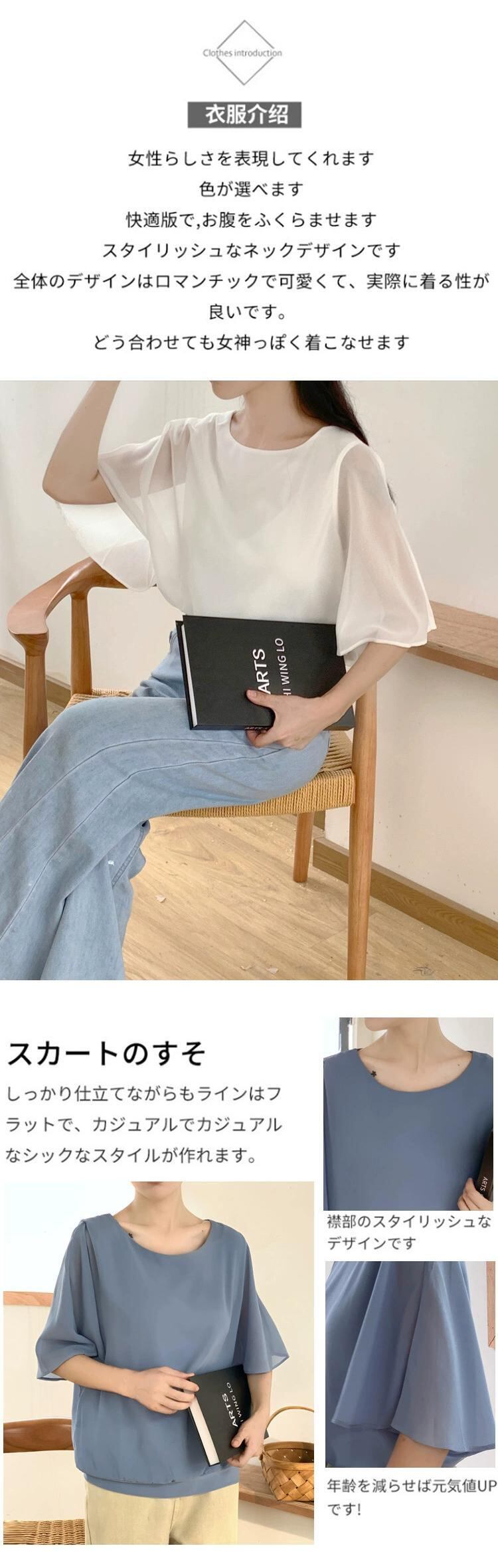 南ロッテ夏新作バットシャツ無地ルーズラウンドネックカジュアルオールマッチシフォンシャツトップ サマー 夏物 Oネック ソリッドカラー cat863700123083