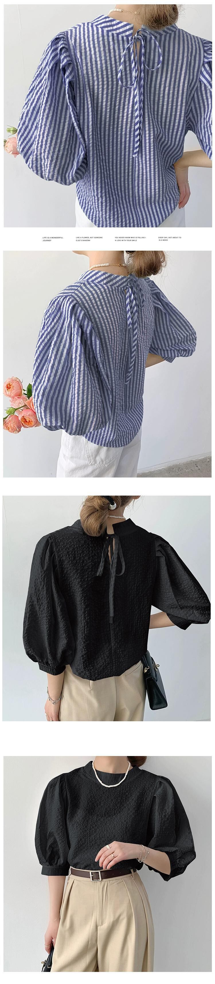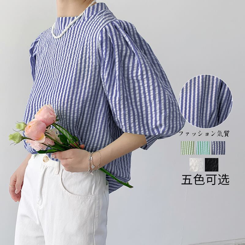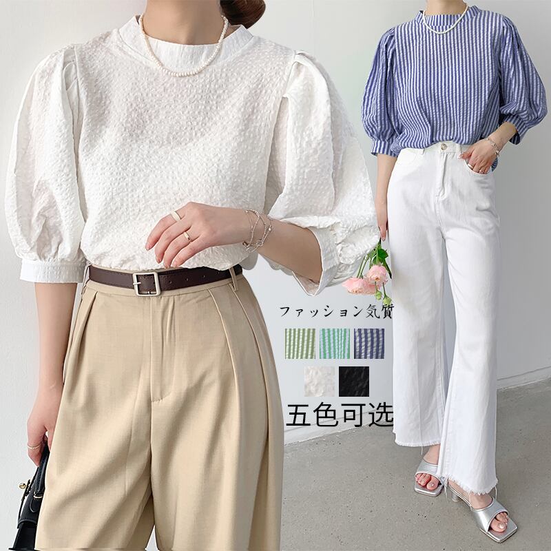 越境夏ロッテ新しい気質通勤パフスリーブ五分袖ネクタイルーズトップレディースシャツ サマー 夏物 cat875046339879