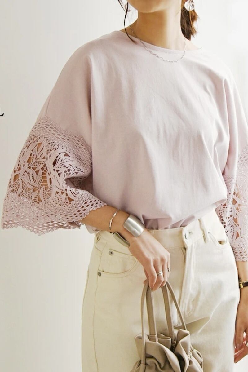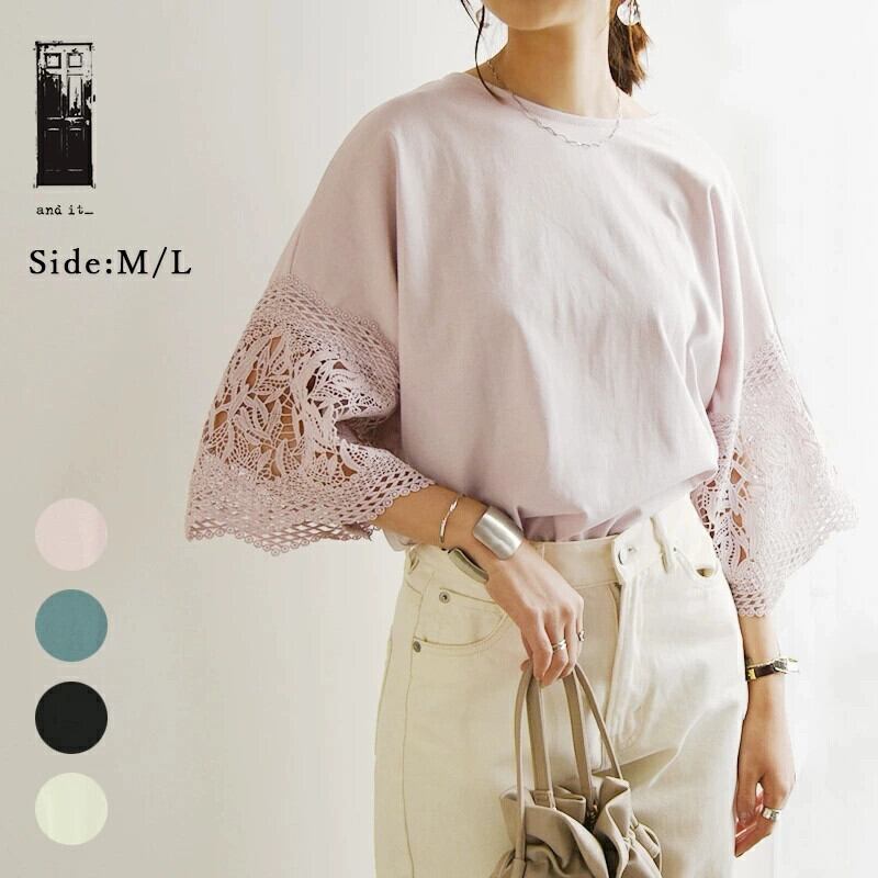 クロスボーダーロッテeseと夏の新しい緩い中空レース七分袖ステッチラウンドネックTシャツトップ サマー 夏物 Oネック cat820178165869