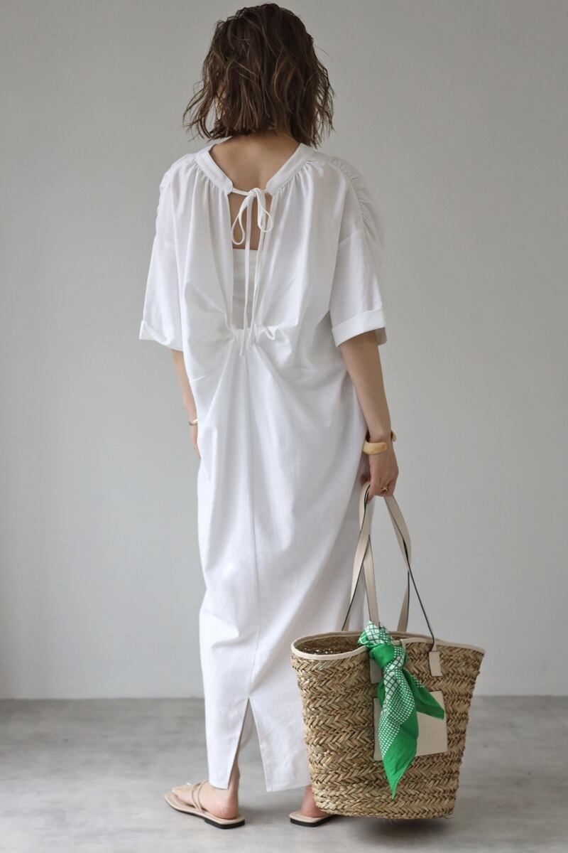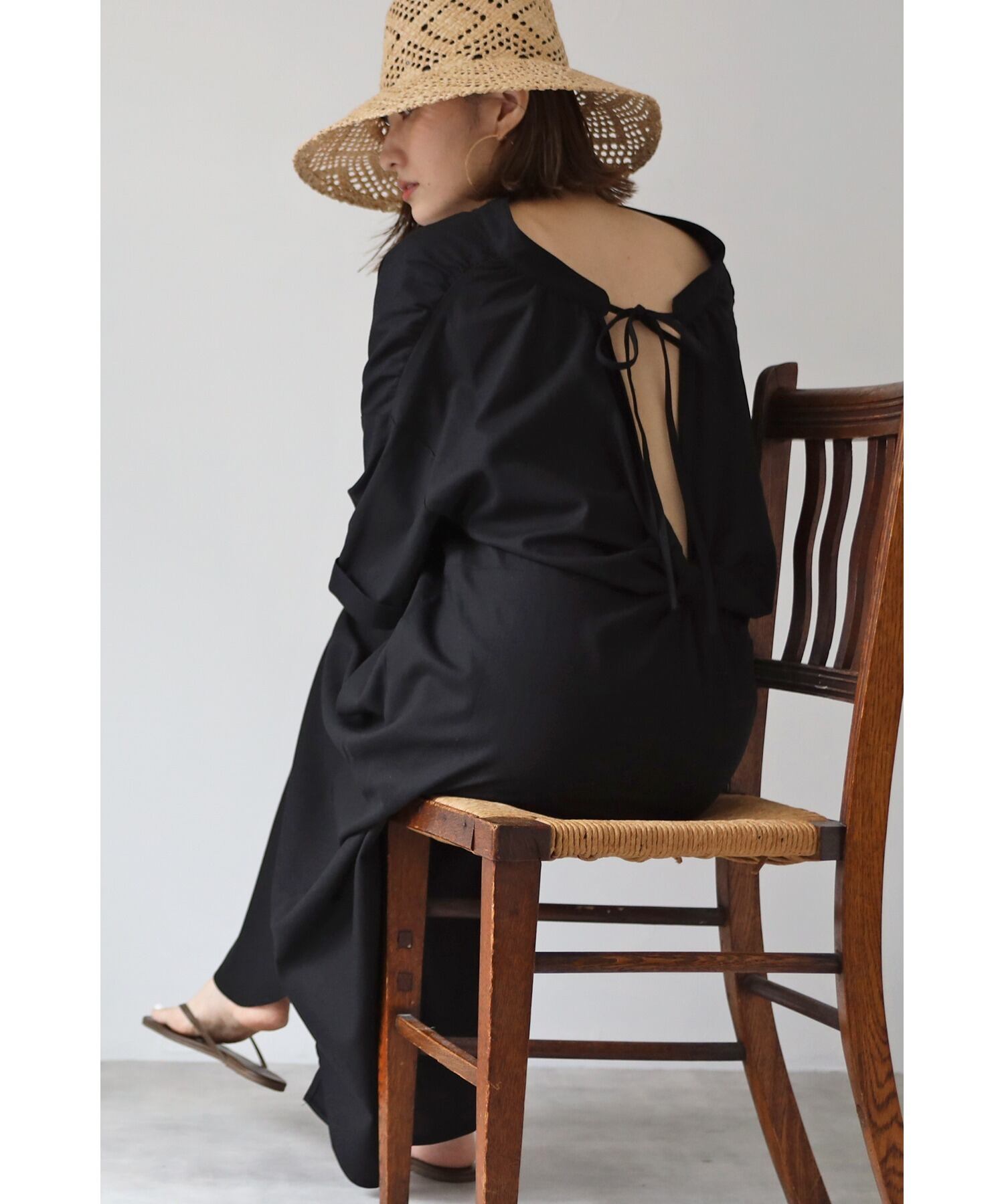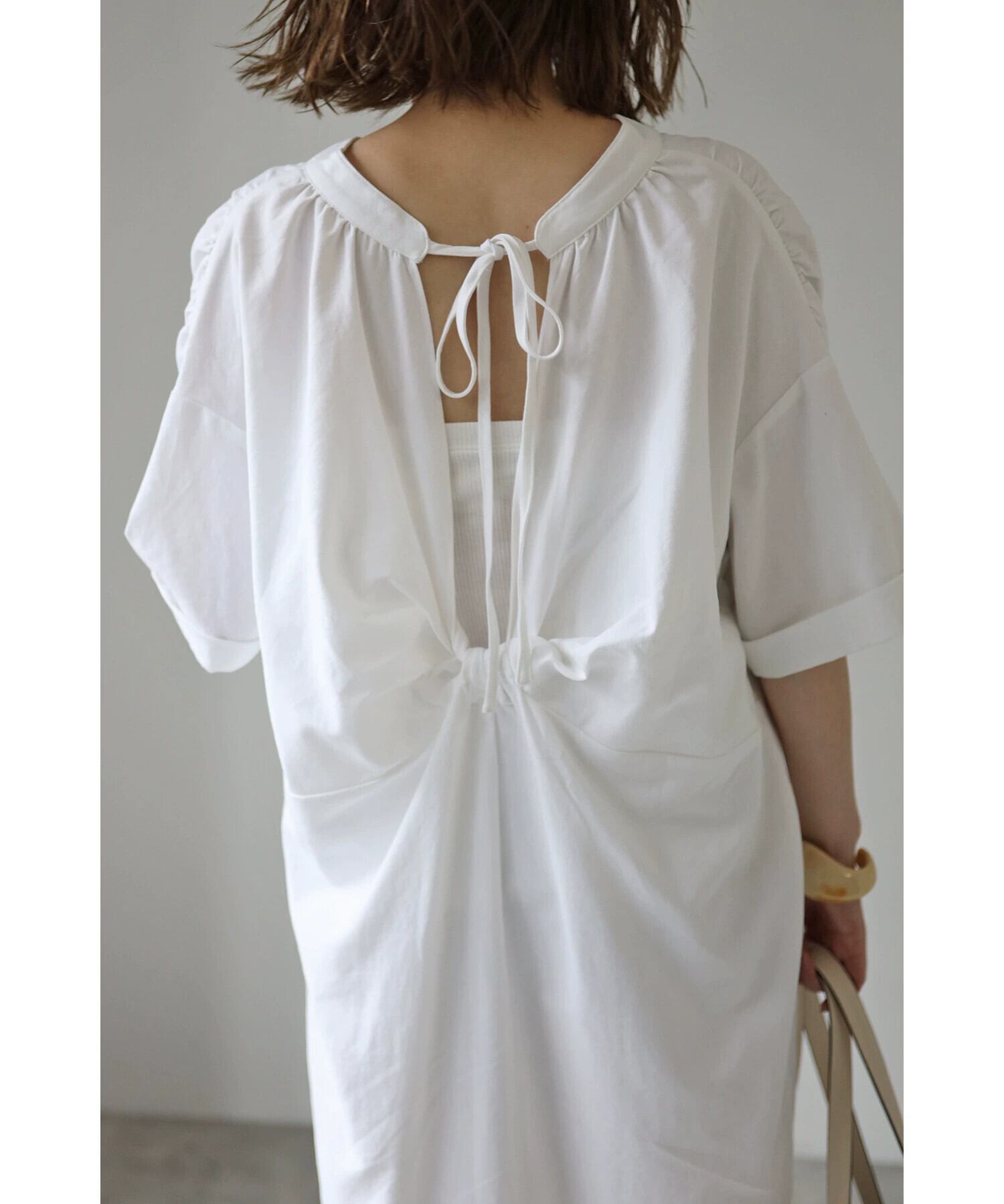 クロスボーダー夏の新しいスタイルのバックスリット結び目ネクタイ中空Vネックルーズミドル丈膝上ドレス サマー 夏物 cat815239697804