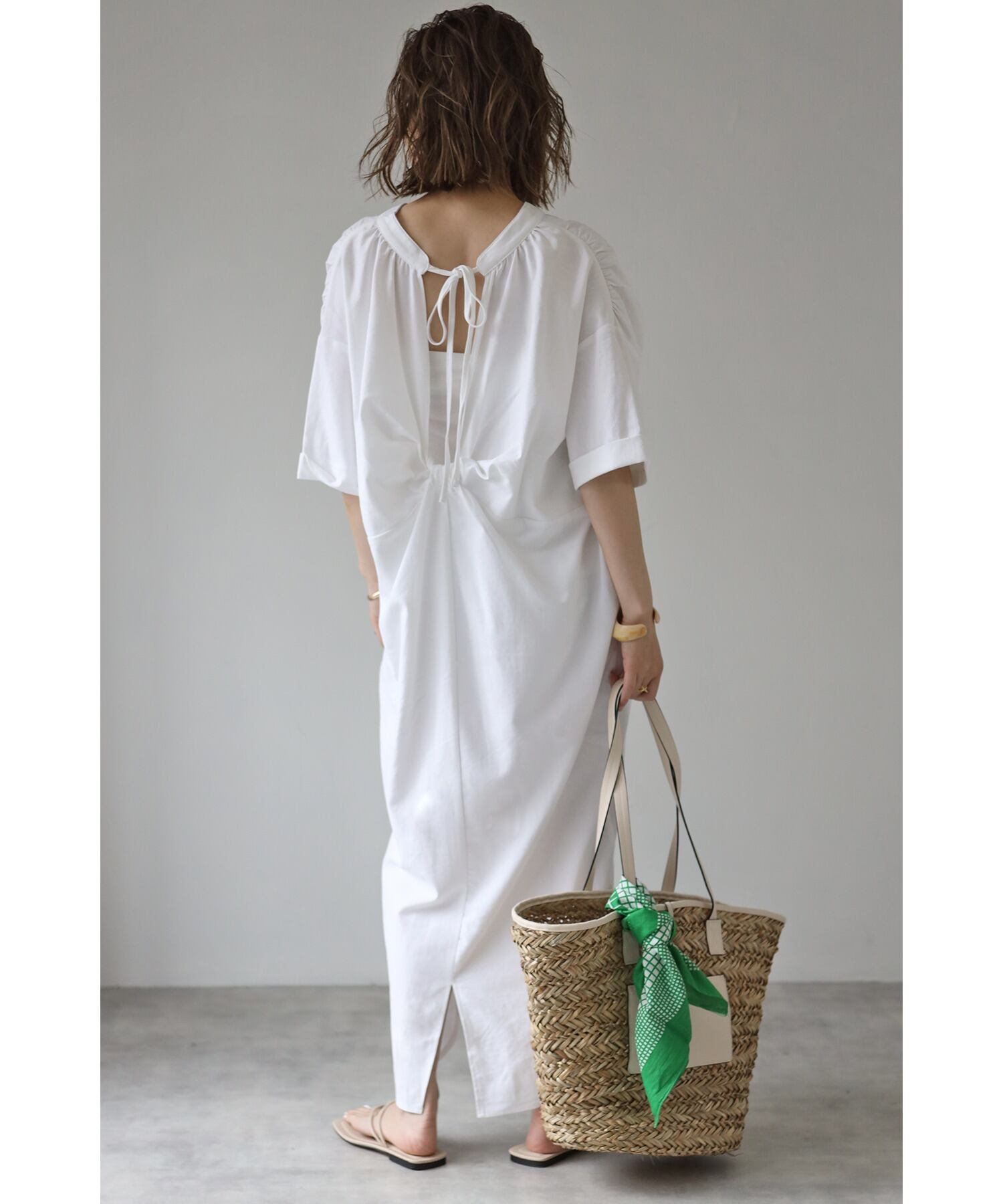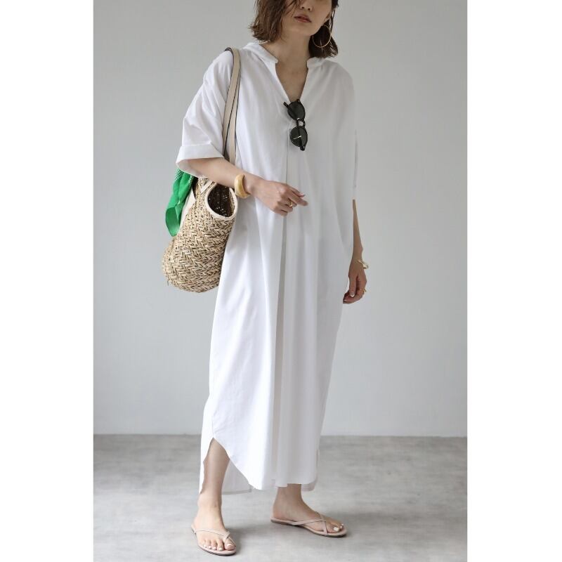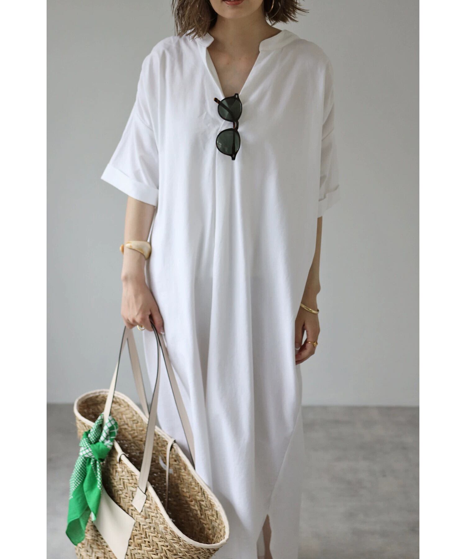 クロスボーダー夏の新しいスタイルのバックスリット結び目ネクタイ中空Vネックルーズミドル丈膝上ドレス サマー 夏物 cat815239697804