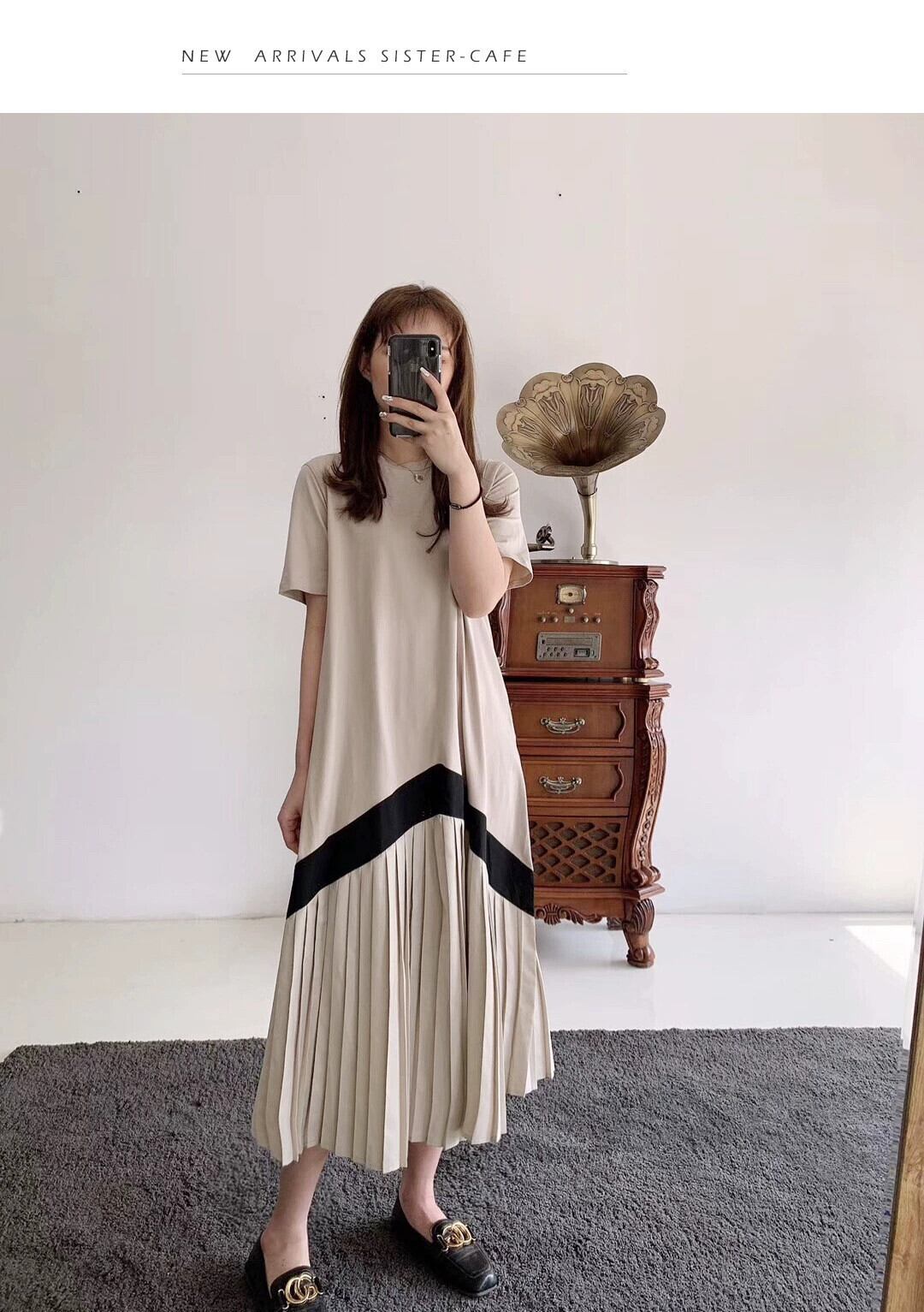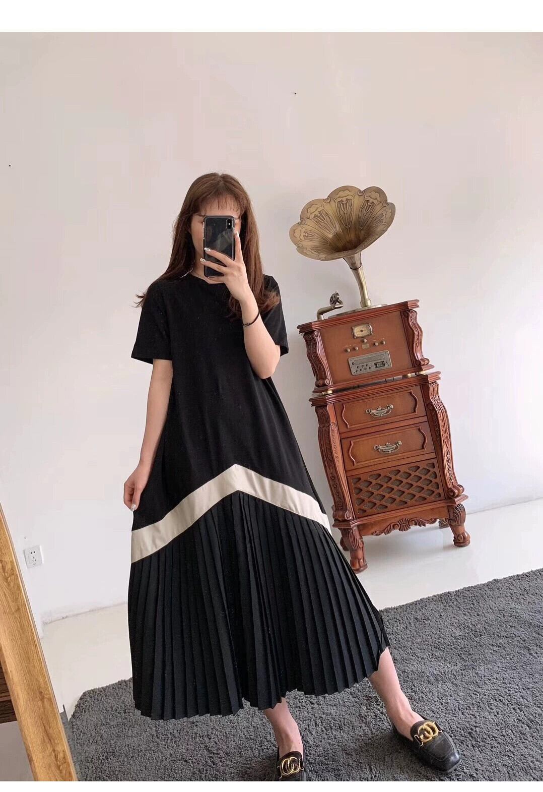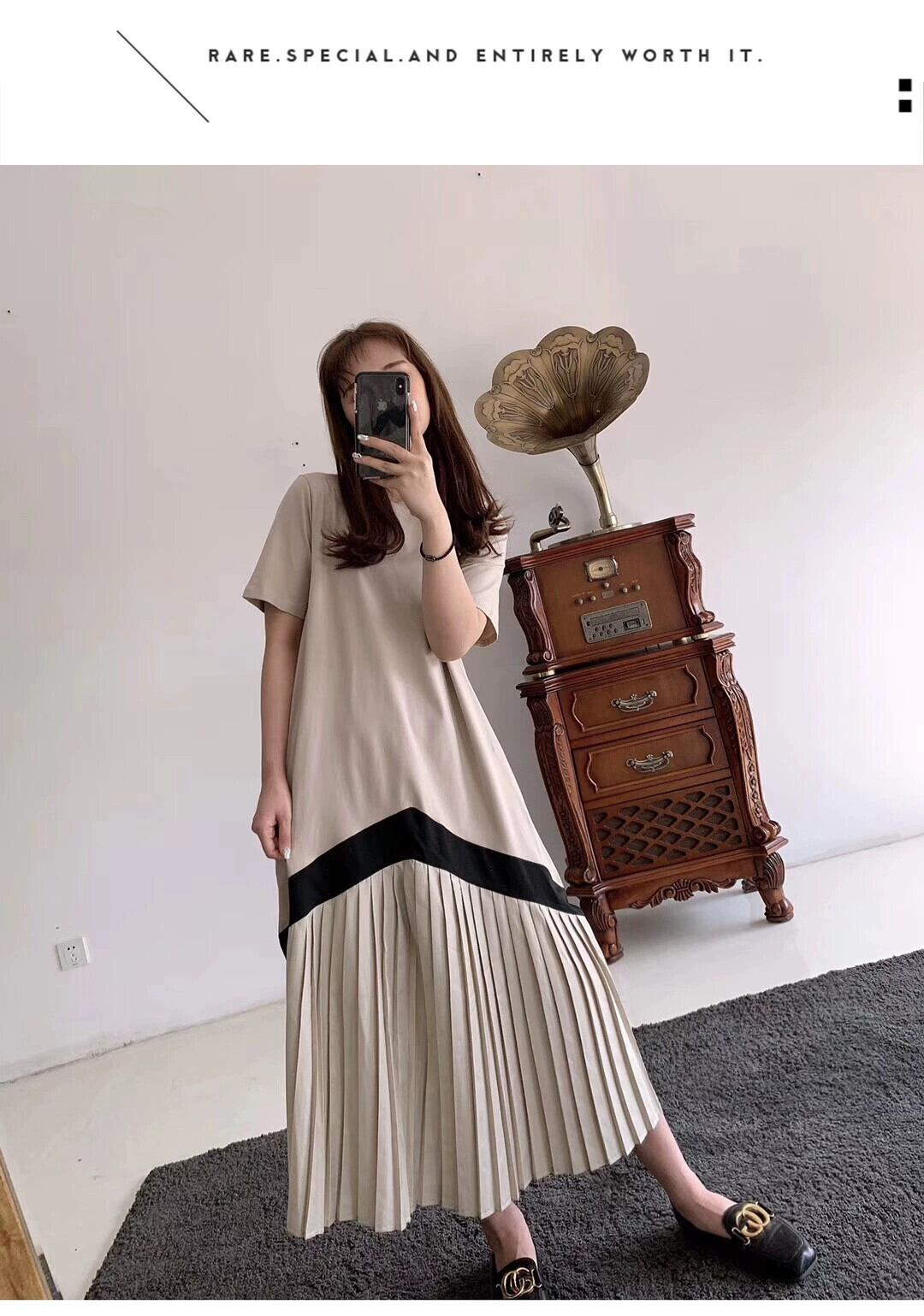 2022 夏の新しいデザイナースタイルのプリーツステッチドレス女性のゆったりとした体型カバースリム膝丈スカート サマー 夏物 cat829194351988