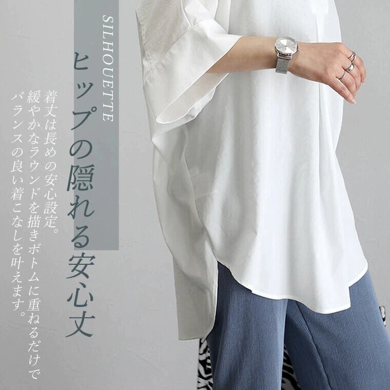 クロスボーダー ese 新しいサマードレス V ネックプルオーバー緩くて薄いシンプルな無地七分袖トップスミドル丈シャツ 夏物 Vネック ソリッドカラー cat823750331761