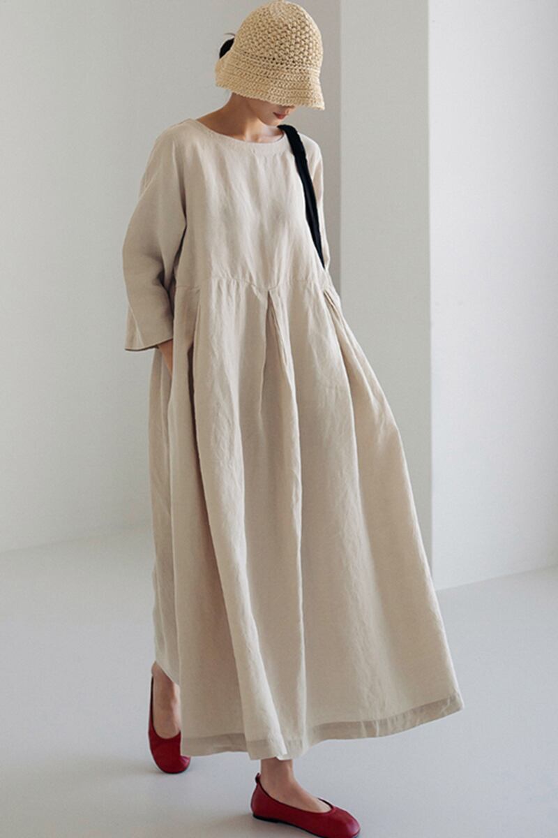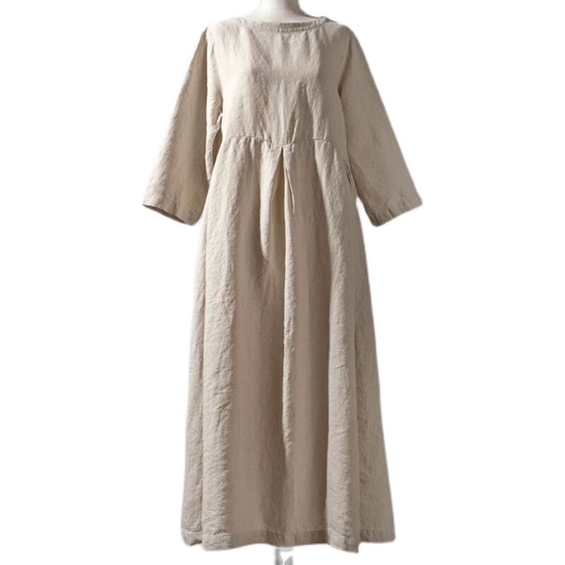 クロスボーダー ese 緩いプラスサイズのドレスの女性の春と夏の新しいラウンドネックプルオーバー無地脂肪 mm 膝上のロングスカート 大きめサイズ スプリング 春物 サマー 夏物 Oネック ソリッドカラー cat898128843889