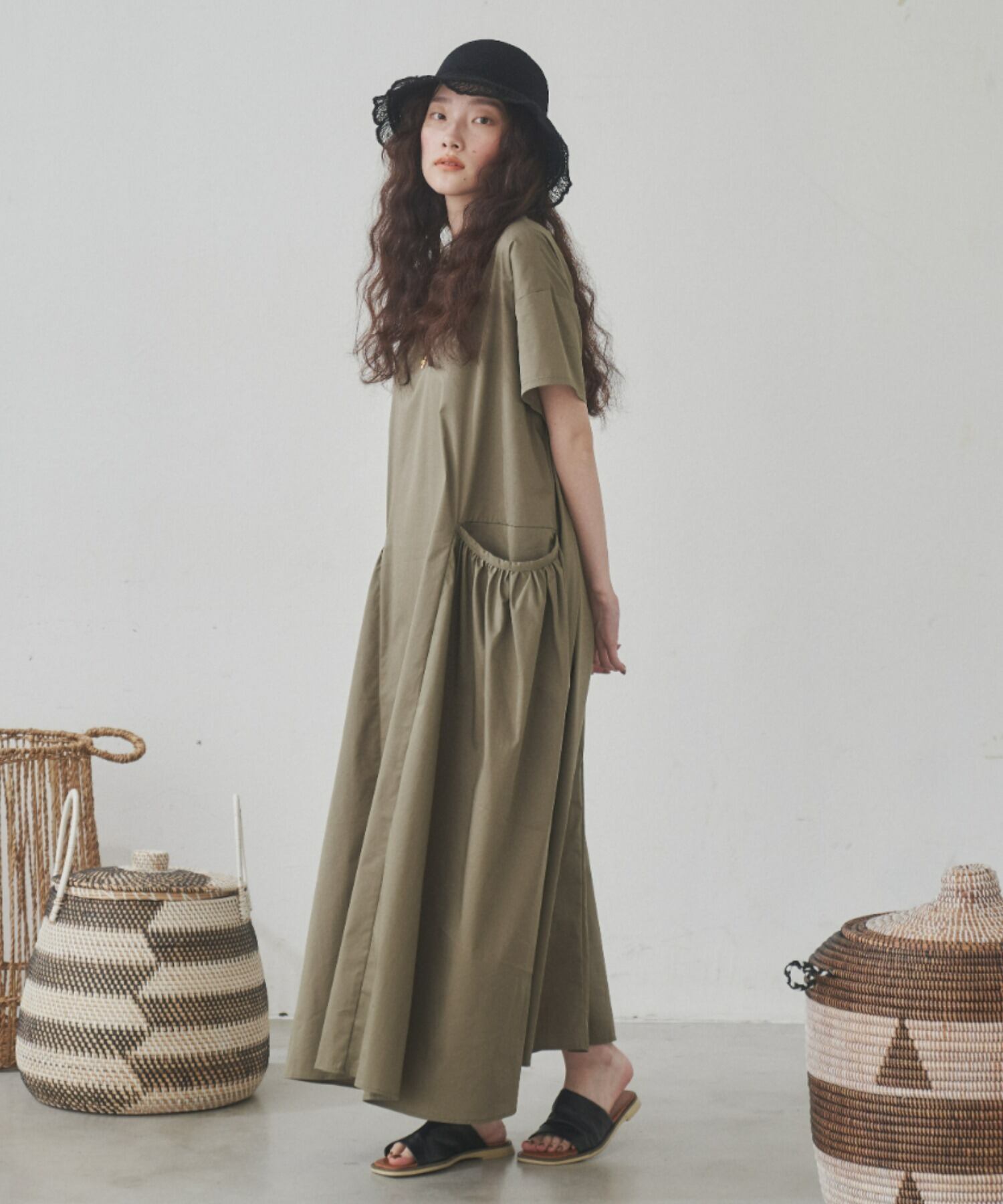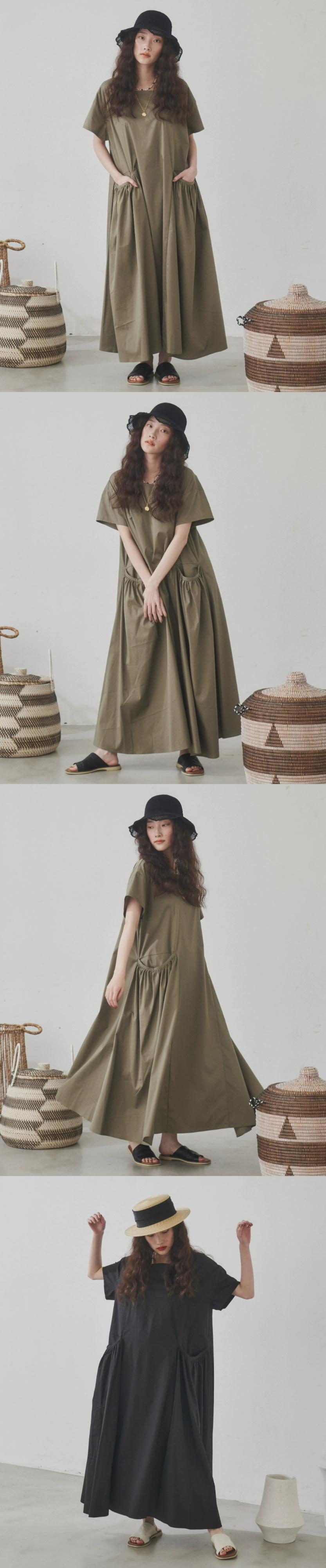 越境ロッテ夏新作文学芸術ルーズ無地大きなポケットカジュアル半袖オールマッチ膝上ドレス サマー 夏物 ソリッドカラー cat833420915227