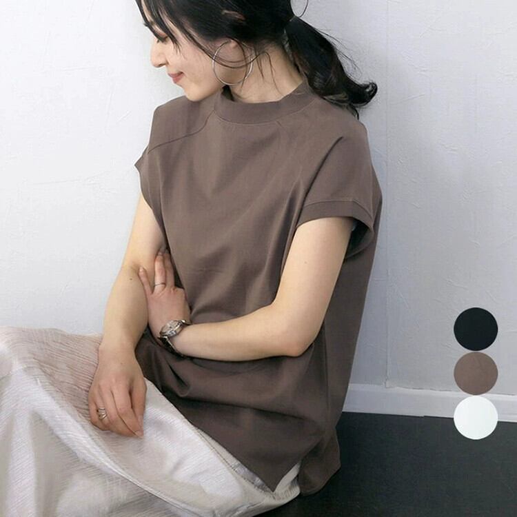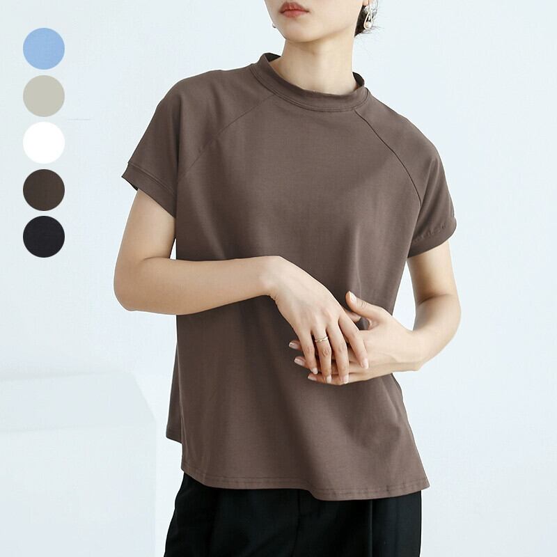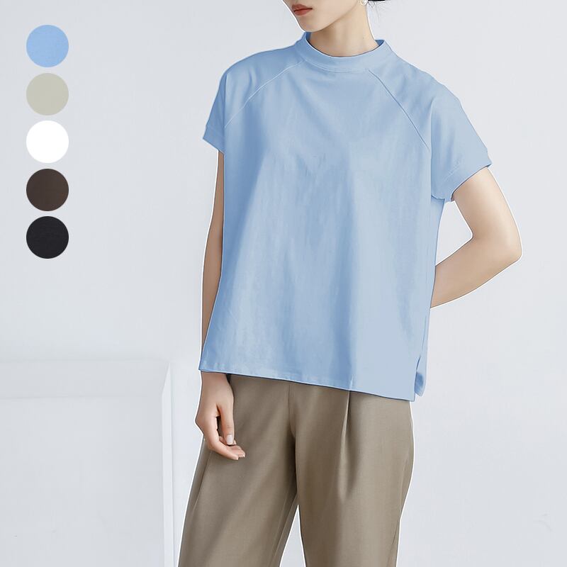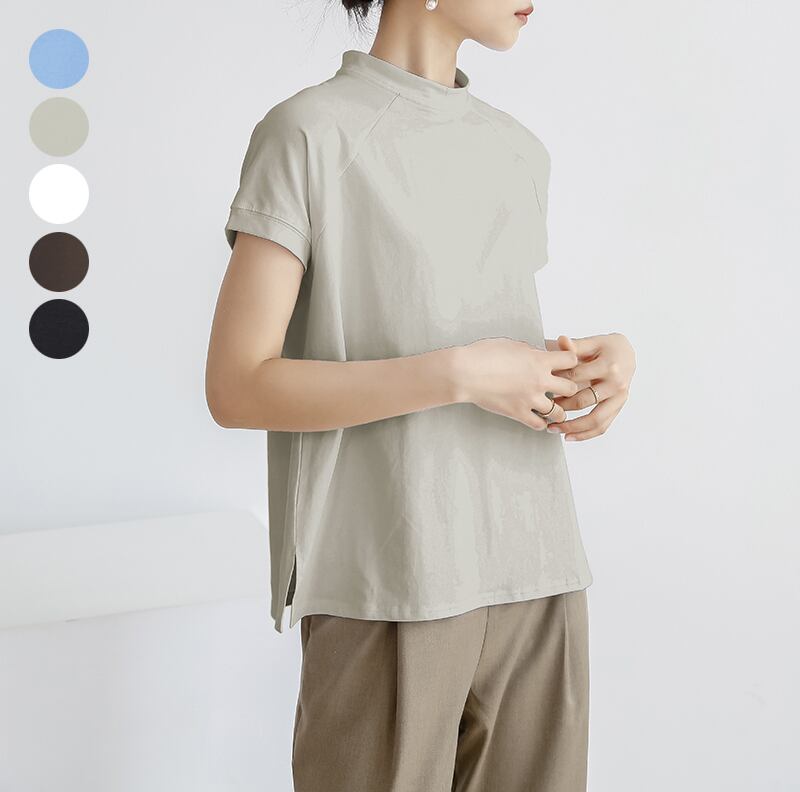 and South 2021 夏の新無地シンプル文学綿ルーズラウンドネック半袖 Tシャツサイドスリットレディーストップス コットン サマー 夏物 Oネック ソリッドカラー cat893224592013