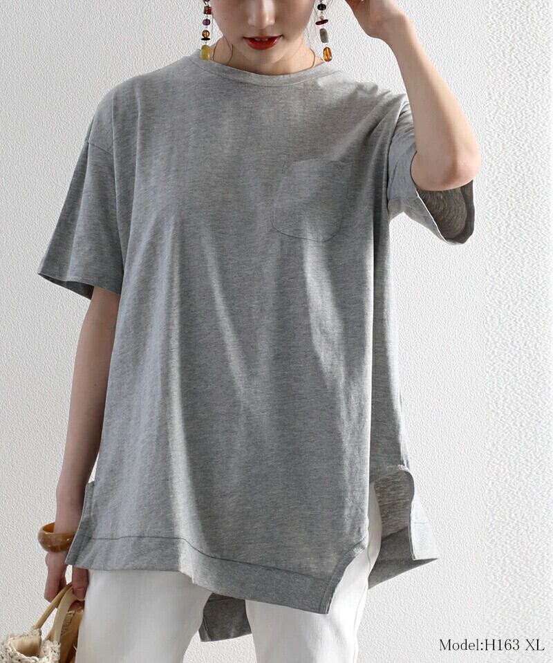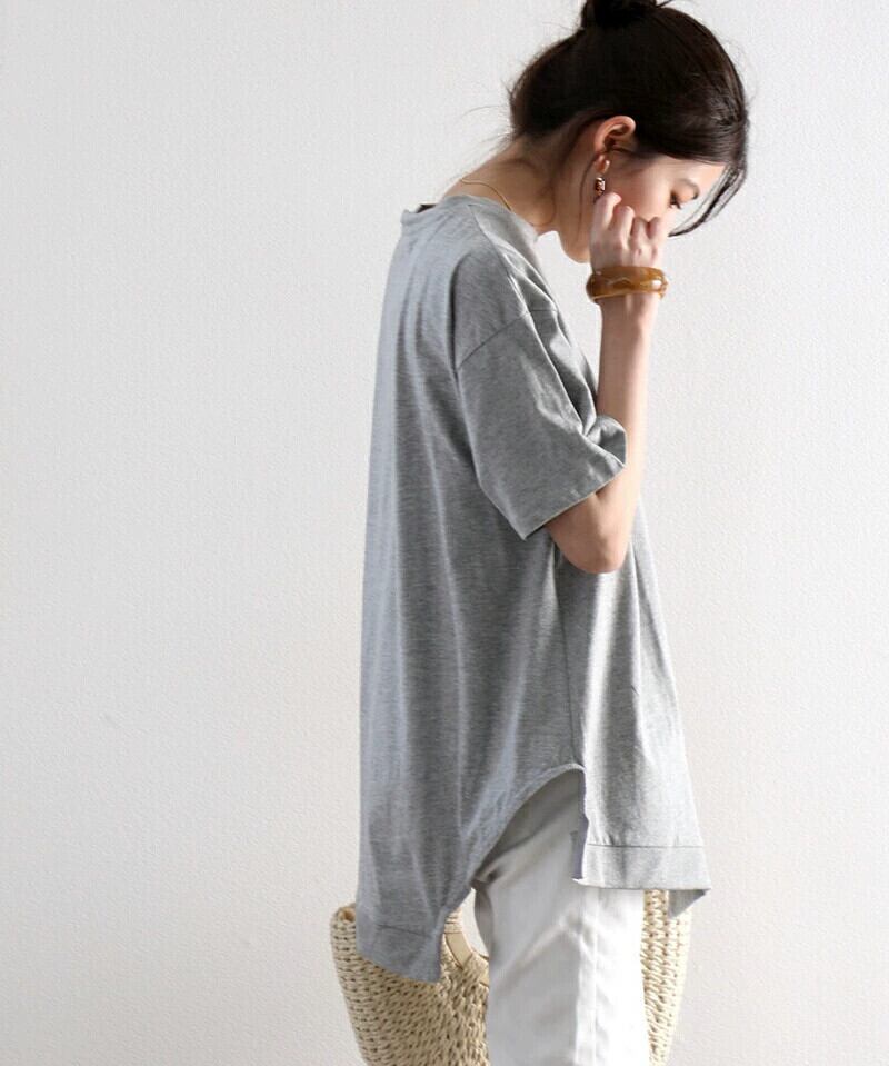 国境を越えたロッテeseと新しい夏の半袖新しい不規則なルーズパッチポケットロングTシャツトップ サマー 夏物 cat878286230473
