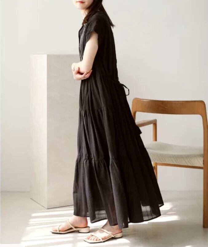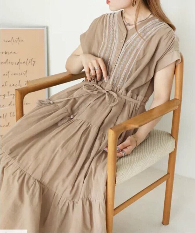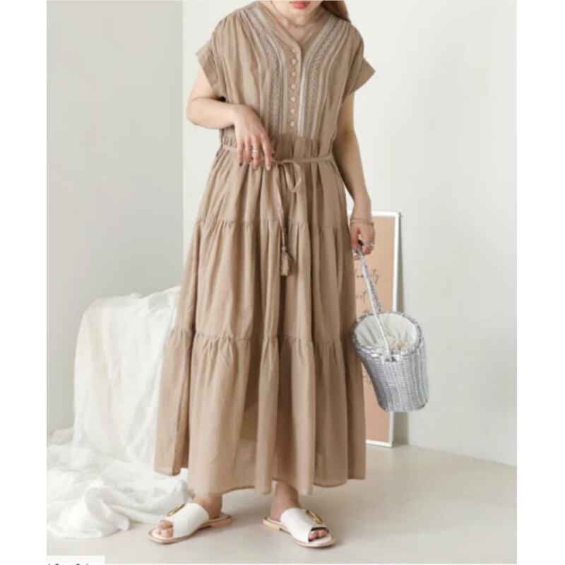 クロスボーダーロッテセと夏の新作刺繍半袖ルーズスリムロングドレスAライン蓮の葉スカート サマー 夏物 cat864815467632