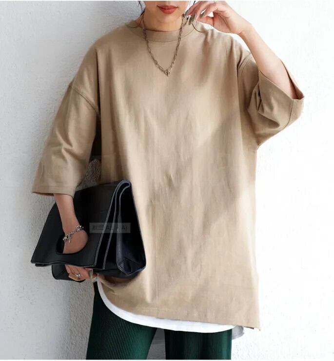 これらの製品と新製品、大きいバージョンの T シャツ、女性の純綿のルーズ トップス、カジュアルなミドル丈のクロスボーダー スタイル コットン Tシャツ ピュア cat860390392505