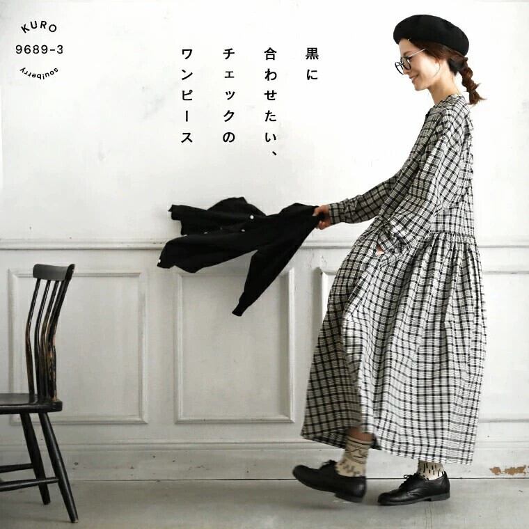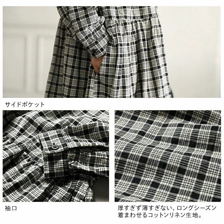 越境秋冬新作ゆったり大きいサイズカジュアルチェック柄スタンドカラー長袖ワンピース ロング 大きめサイズ オータム 秋物 cat862308120234