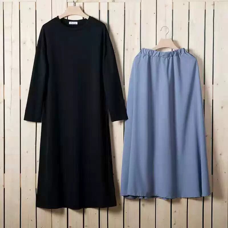 AliExpress クロスボーダー 2021 ese スタイル秋の新ツーピースセット長袖ハイスリット対照的なカラードレス + スカート ロング オータム 秋物 cat834907286346