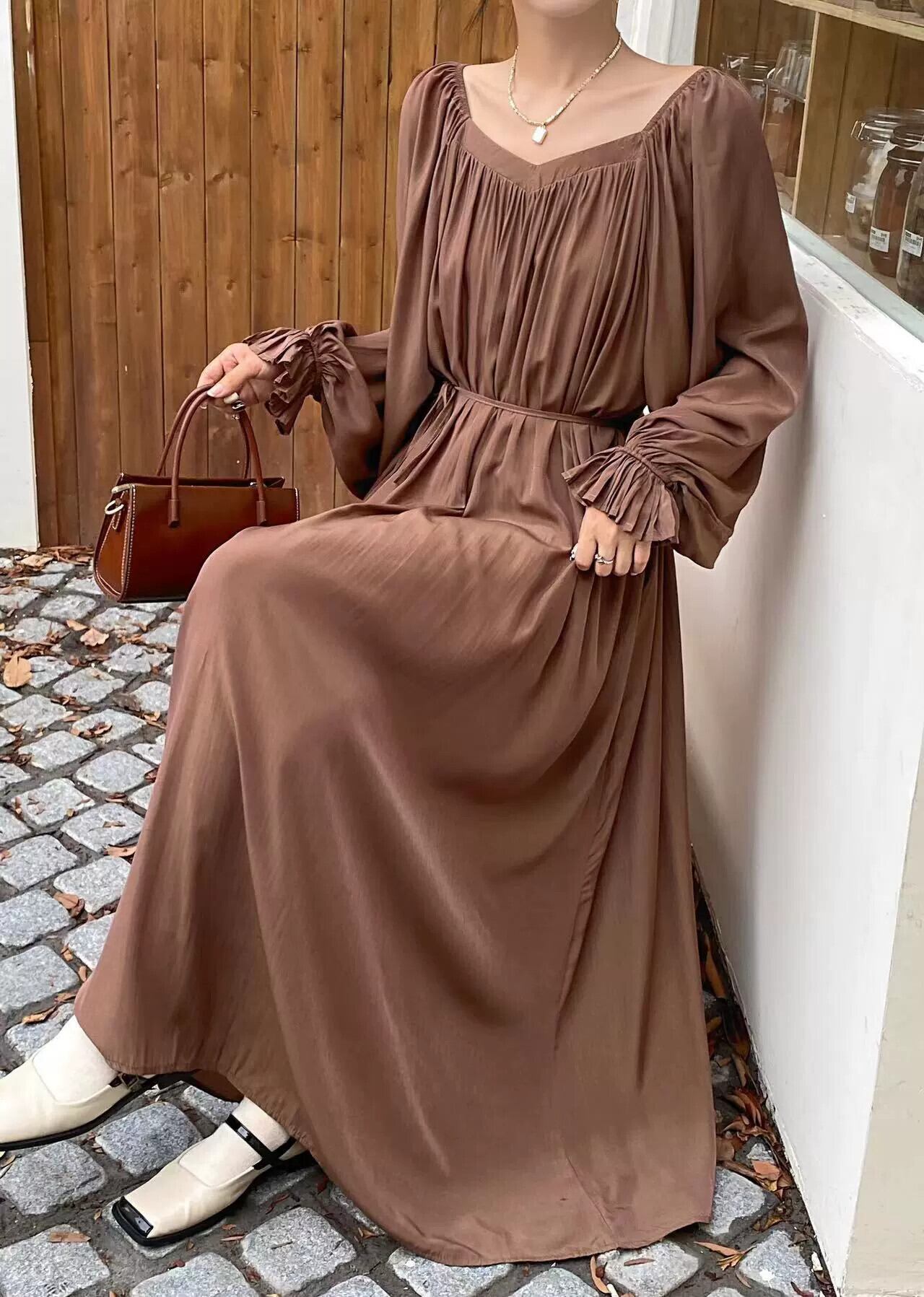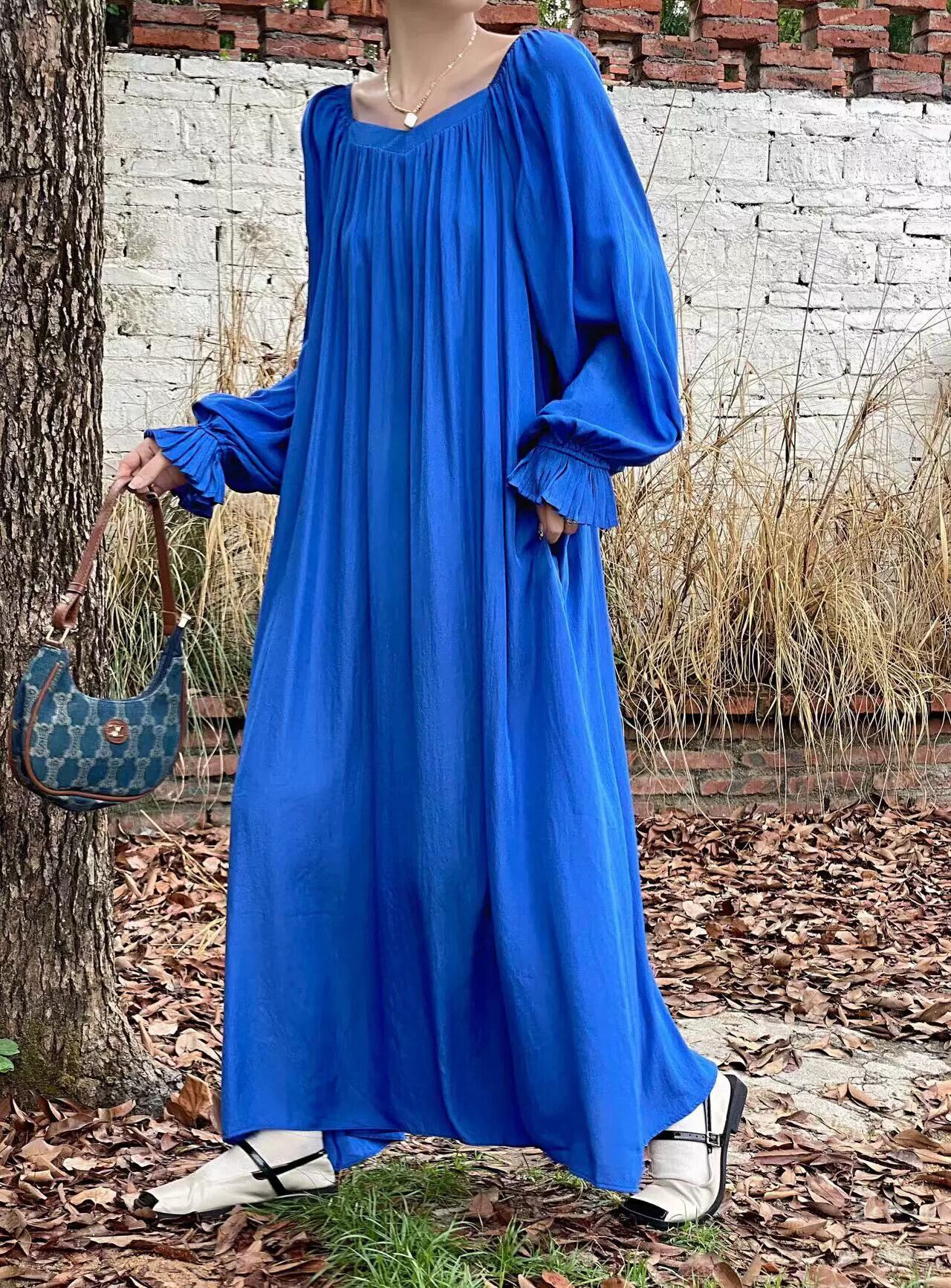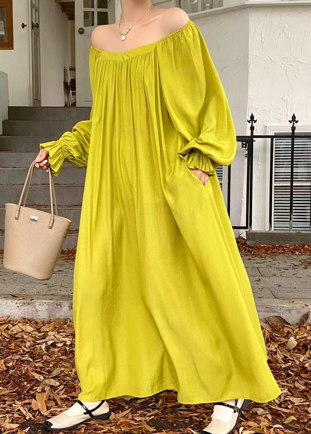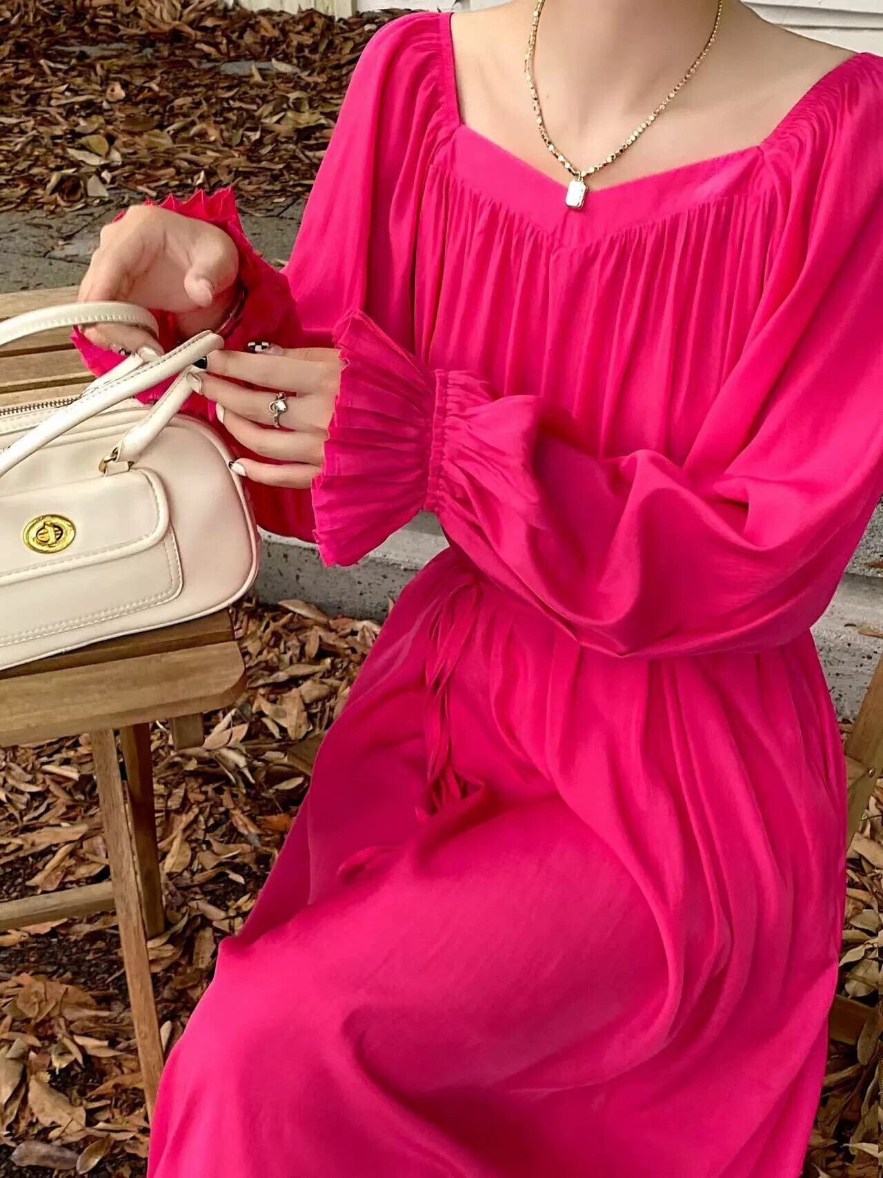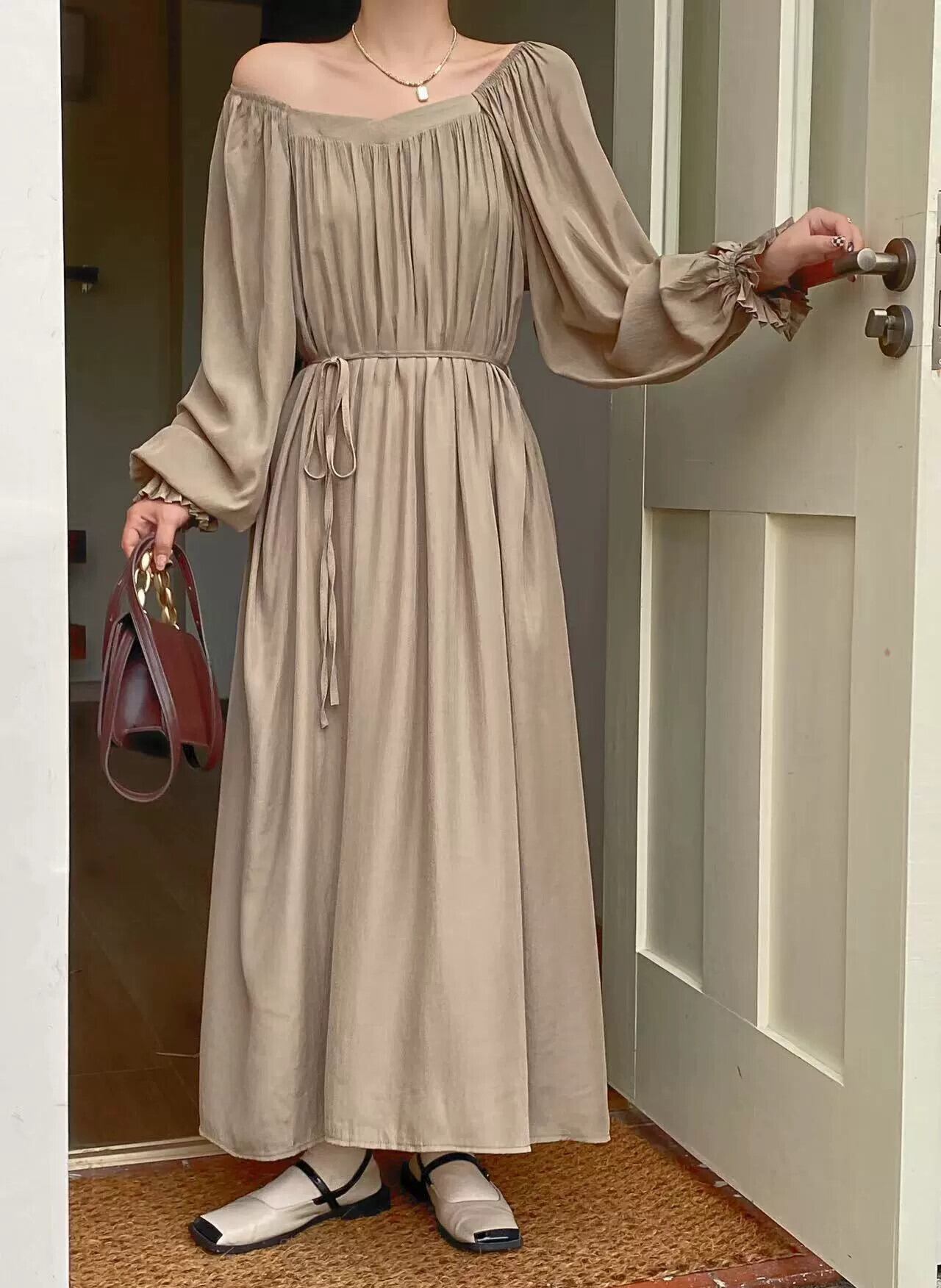 秋と秋の新作ワンショルダーラウンドネックツーウェアルーズレースアップスリムロングドレス オータム 秋物 Oネック cat85648973210