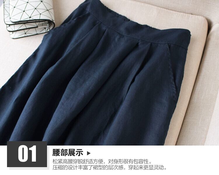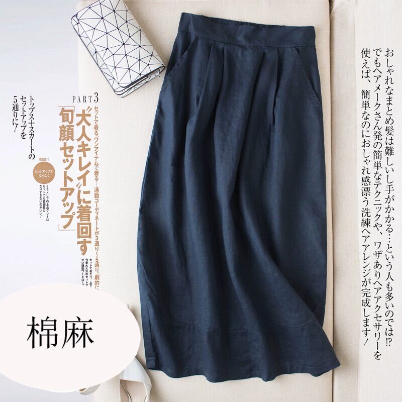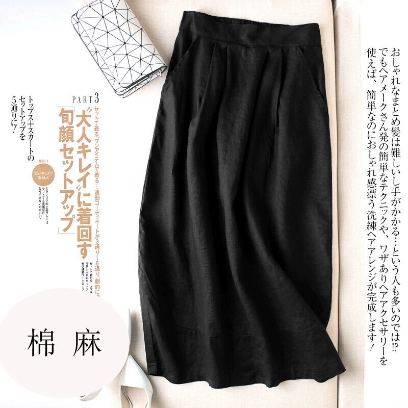 2021 夏 ese レトロ文学ルーズハイウエスト綿とリネンスカートミドル丈カジュアルスカート A ラインスカート コットン サマー 夏物 Aライン cat883063847480