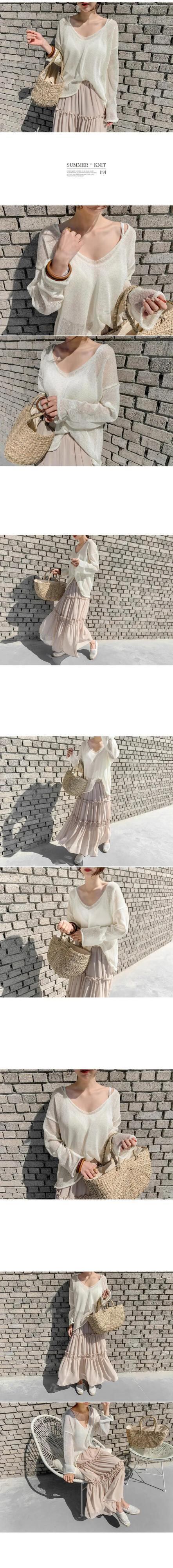 シックな風春と夏の薄いセクション日焼け止めブラウス女性のルーズプルオーバー V ネック気質シースルーセータートップ スプリング 春物 サマー 夏物 Vネック cat854617027744