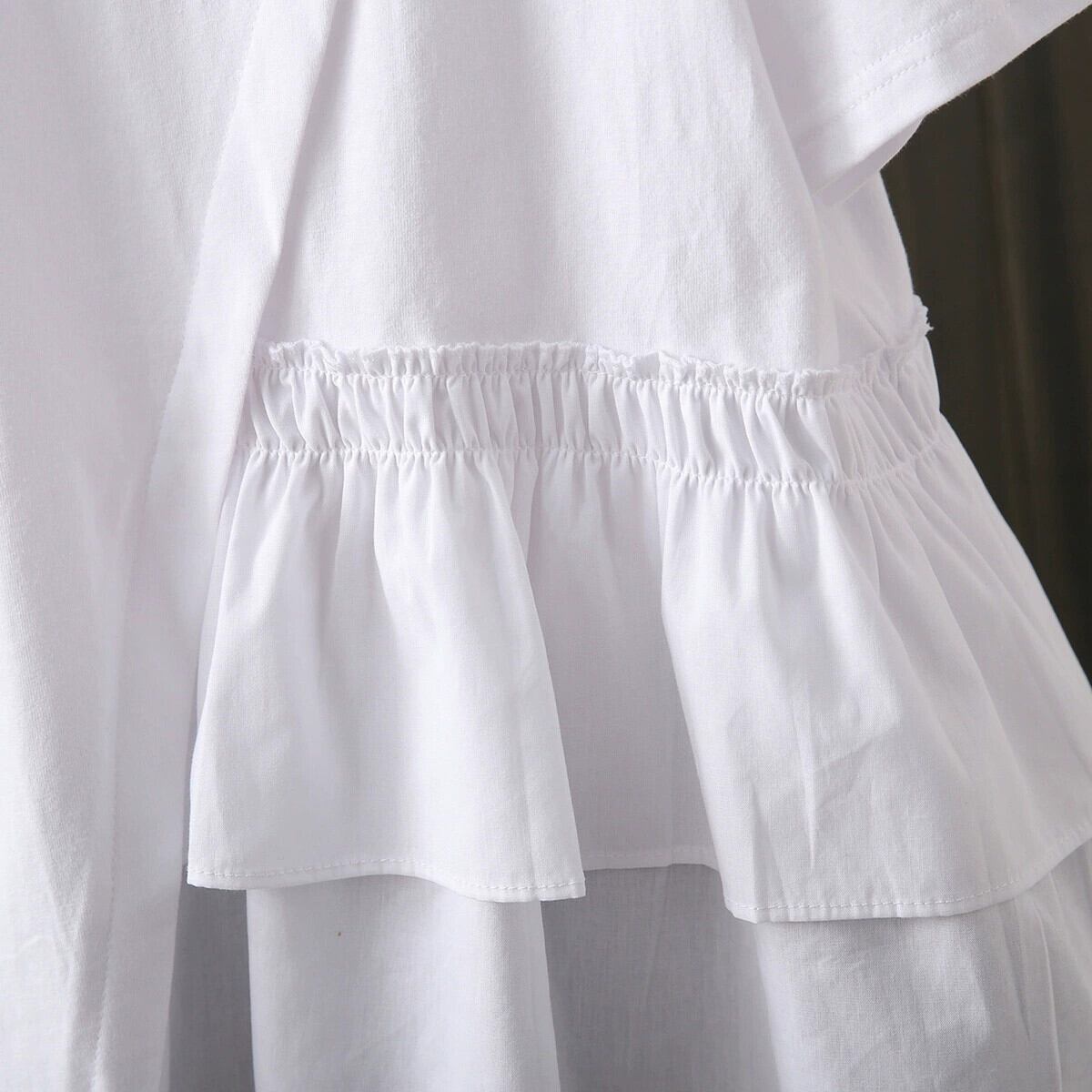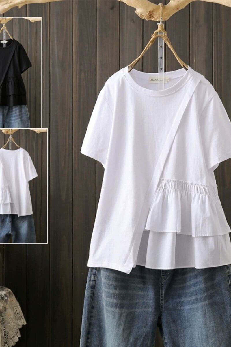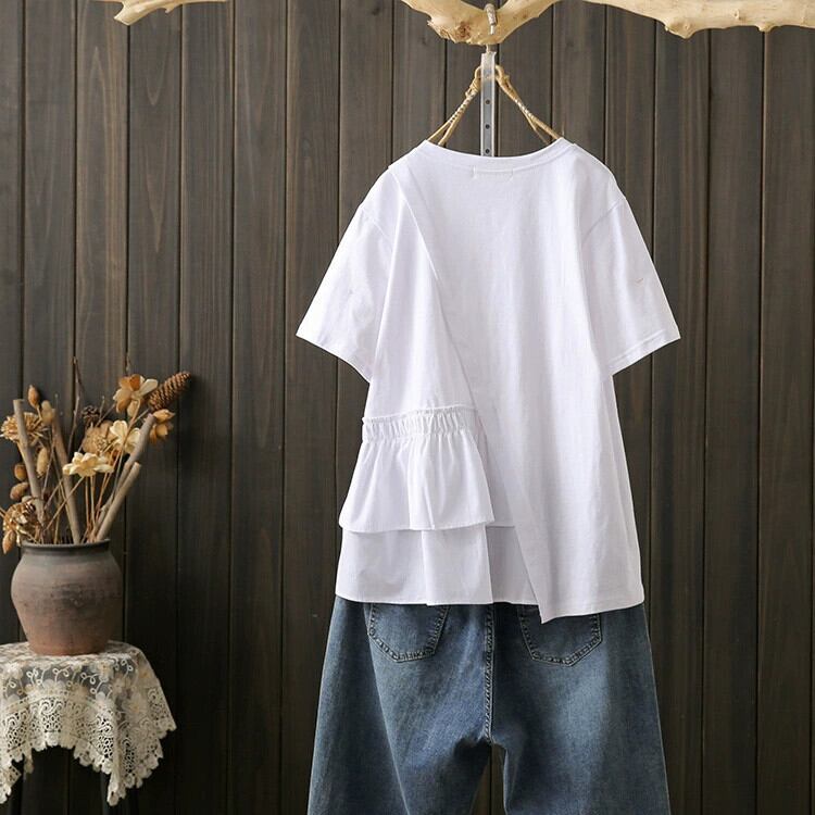 不規則なフリルスプライシングTシャツの大きいサイズの婦人服のバージョン夏半袖年齢軽減ファッショントップベビードールシャツ 大きめサイズ サマー 夏物 cat849278903621