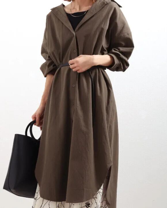 怠惰なスタイルのシンプルなロング膝丈シャツドレス秋長袖ルーズ万能ラペルカーディガンジャケット オータム 秋物 cat88488590515