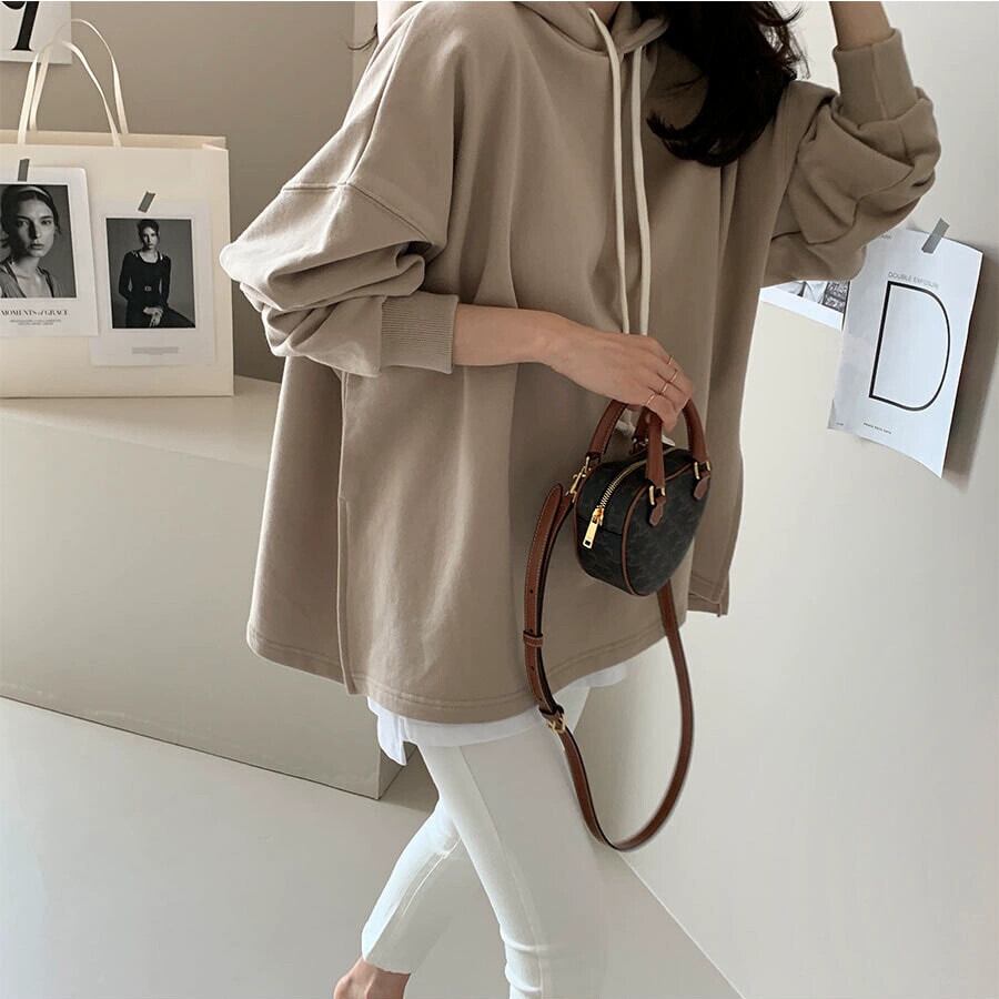 スポット東大門 2023 秋と冬の新しいシックなミッドレングスルーズフード付きスウェットシャツの女性 オータム 秋物 ウィンター 冬物 cat85457455712