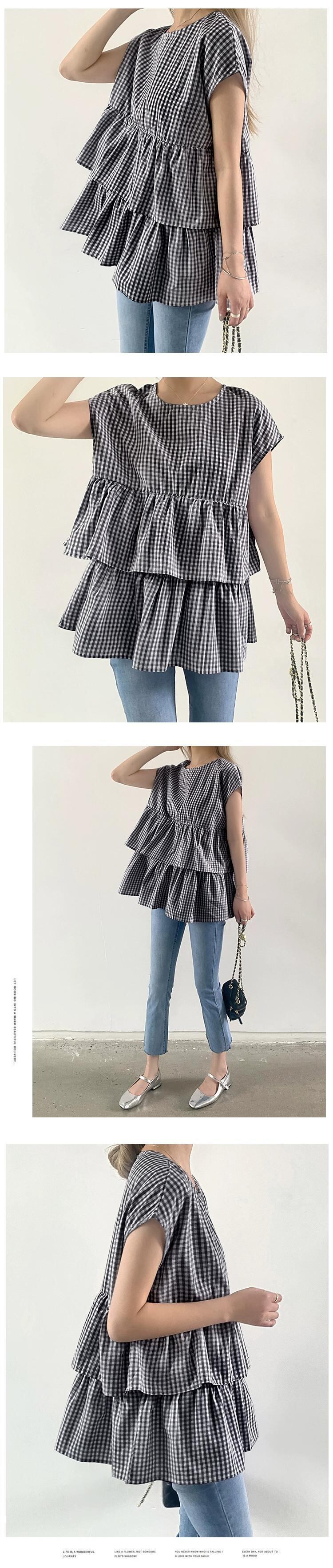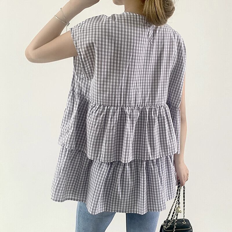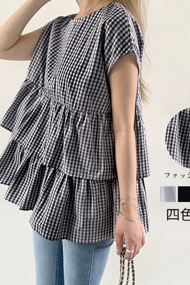 リアルエス 2023 楽天新商品 フリル半袖チェック柄シャツ ベビードールシャツ レディース チェック柄トップス 小さめシャツ cat864494324394