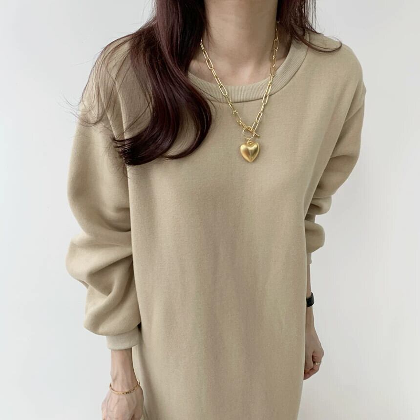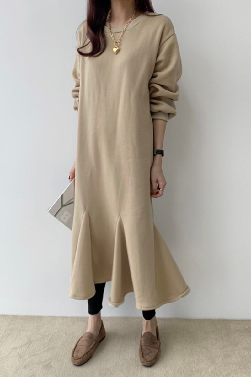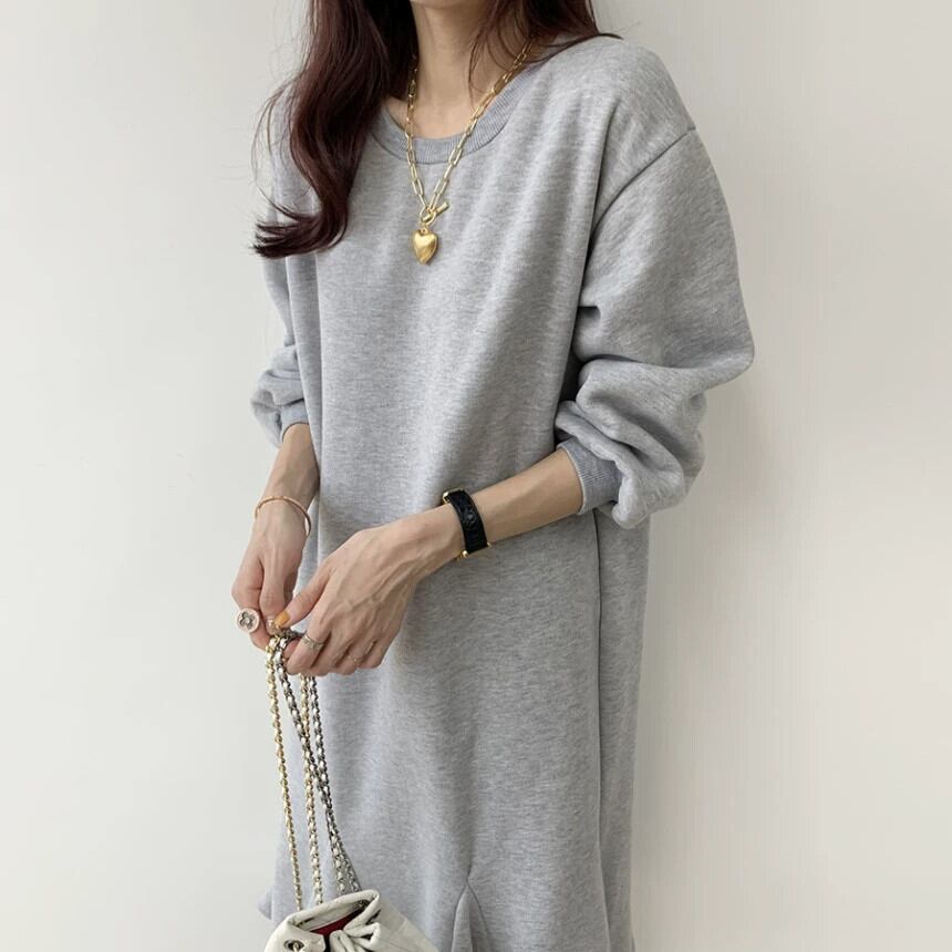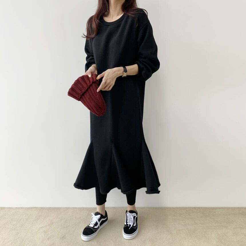 スポットシックな冬肥厚怠惰なラウンドネックルーズカジュアルプラスベルベットフィッシュテールスウェットシャツドレスロングスカート ウィンター 冬物 Oネック cat838108515878