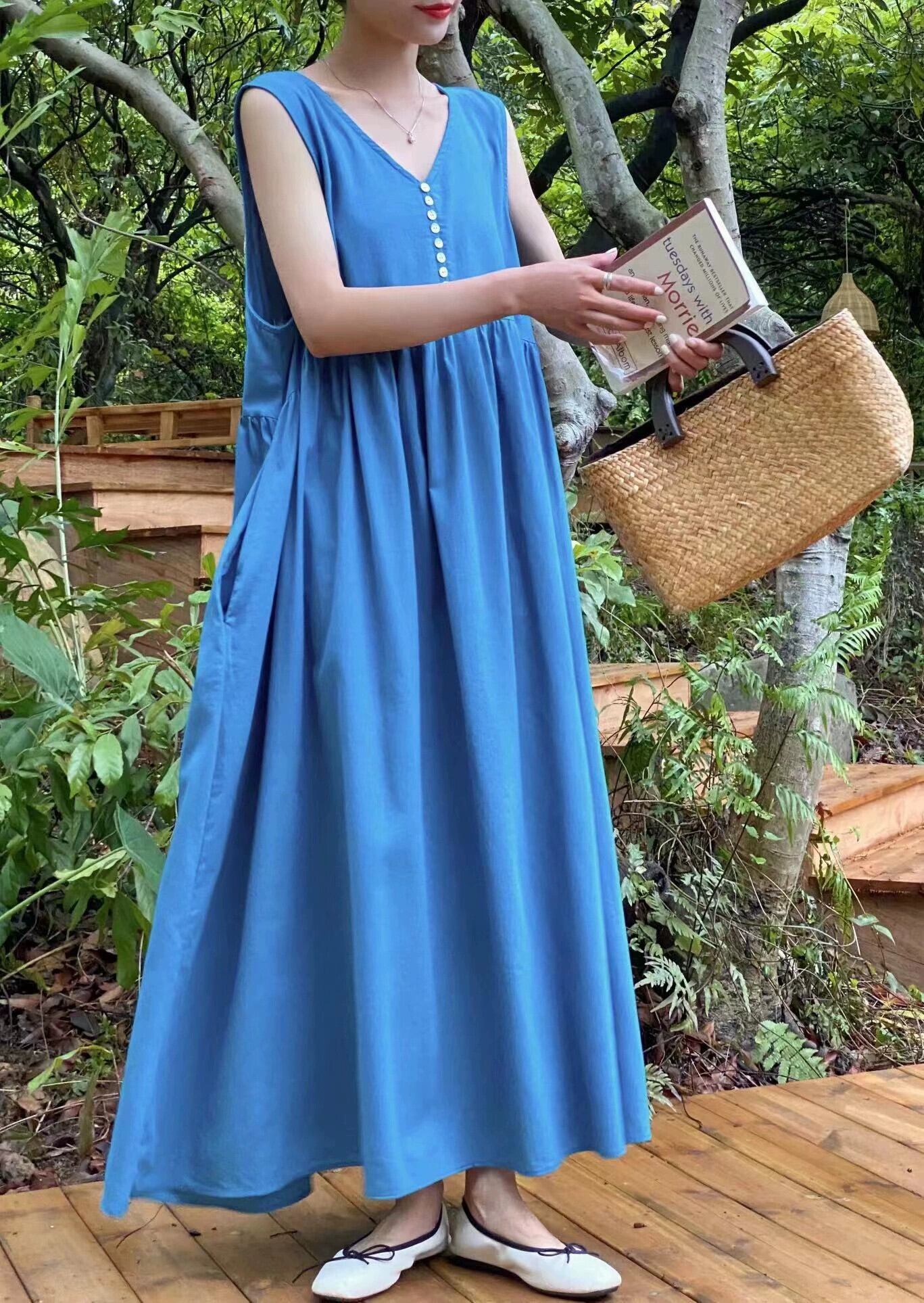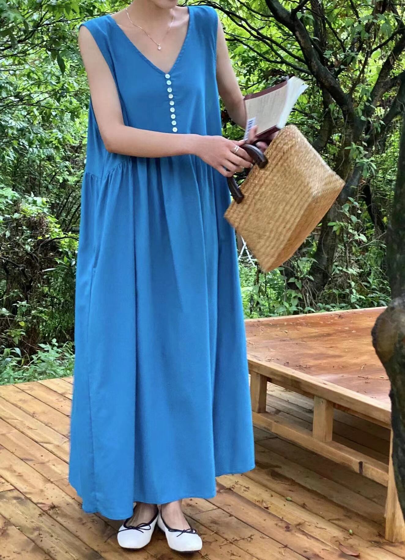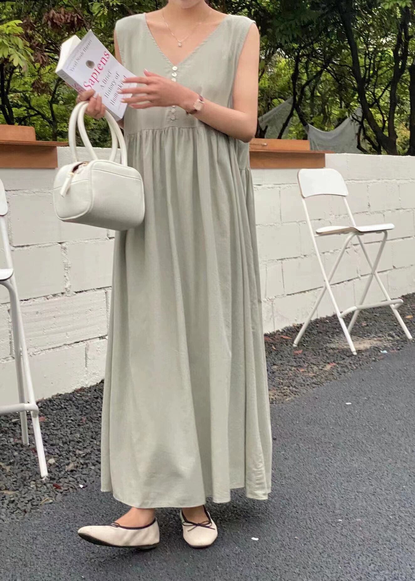 シックな夏の新しいスタイルフレンチボヘミアンスタイルレトロノースリーブvネックドレスロングベストドレス女性 サマー 夏物 cat873488231599