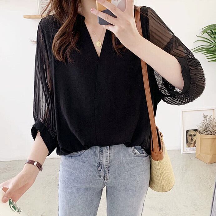 七分袖日焼け防止服 2023 新しい女性のシャツ緩い怠惰な女性の香港スタイルのドレープ夏の女性のトップ サマー 夏物 cat891346826623