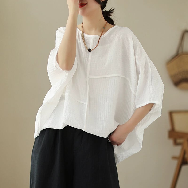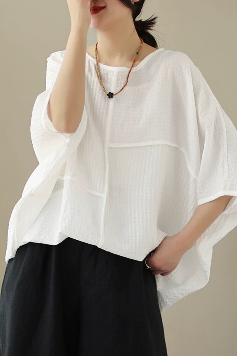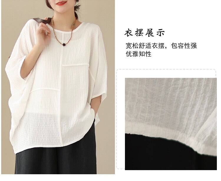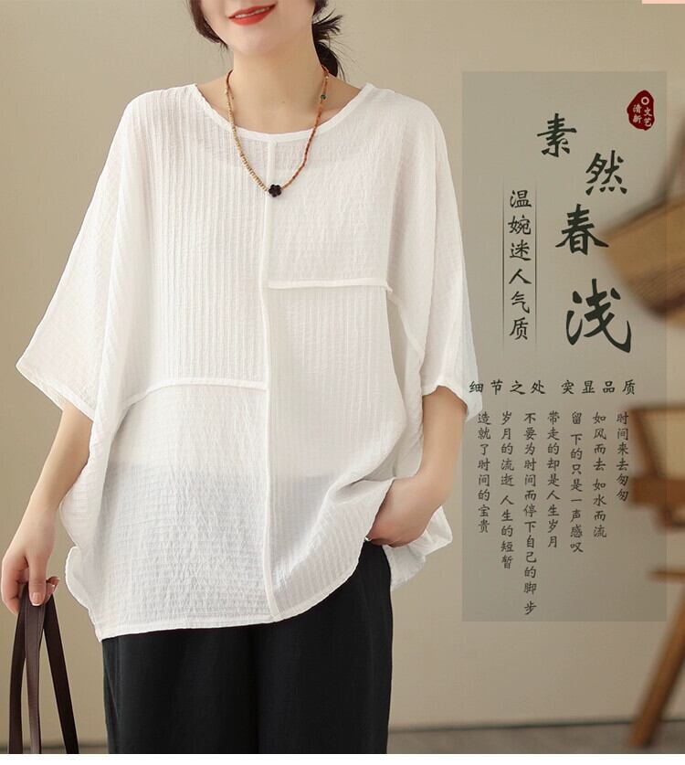 実際のスポットルーズバットスリーブ腹部カバーコットンとリネントップス女性 2023 夏の新カジュアル半袖 T シャツ サマー 夏物 Tシャツ cat896161578310