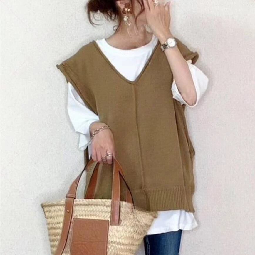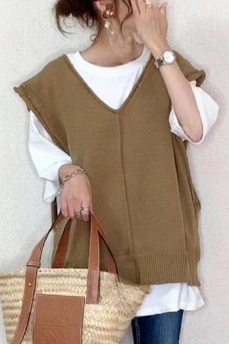 越境eign trade ese style 2023秋冬新作Vネックゆったりシンプルニットベスト+Tシャツ2点セット オータム 秋物 ウィンター 冬物 cat842634148392