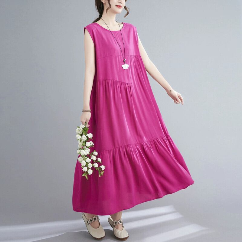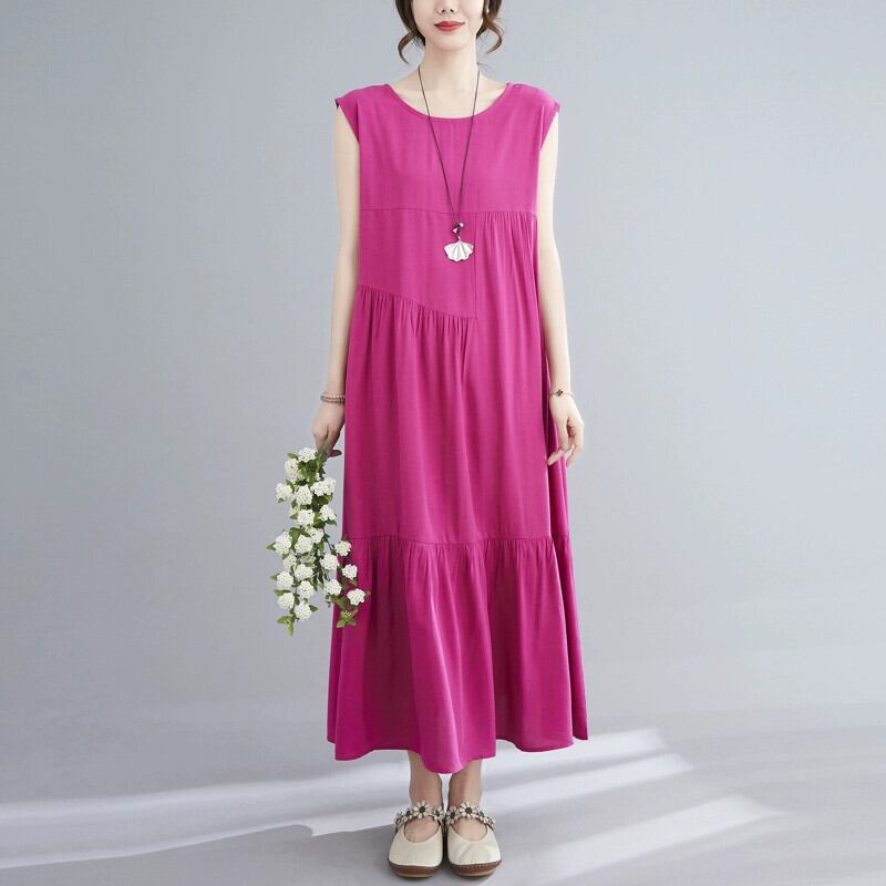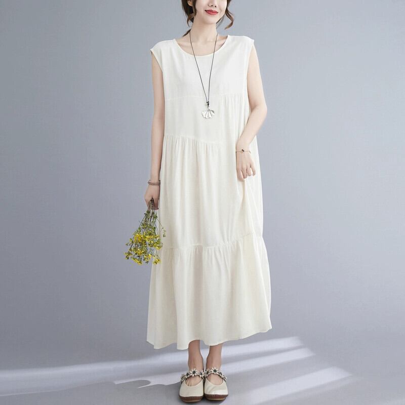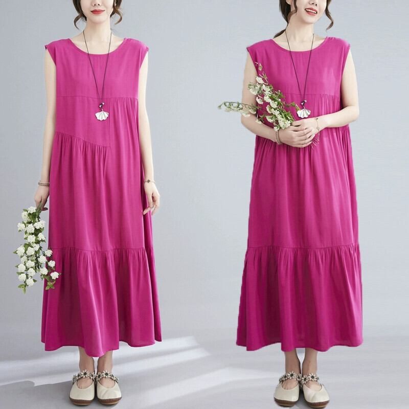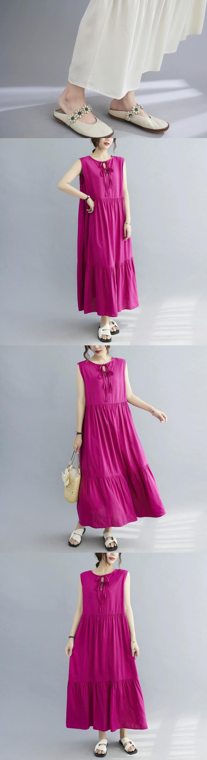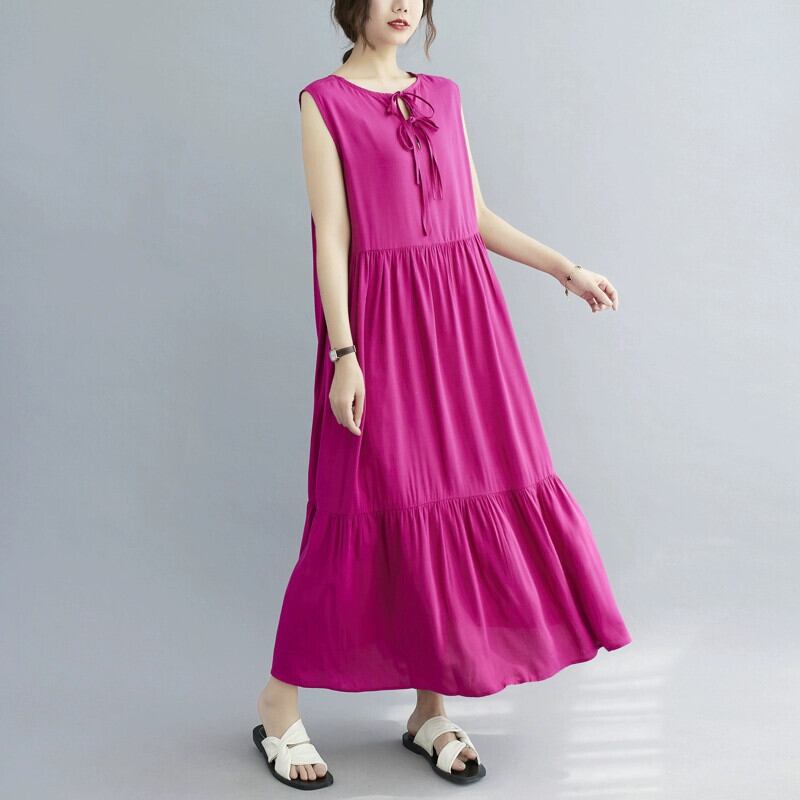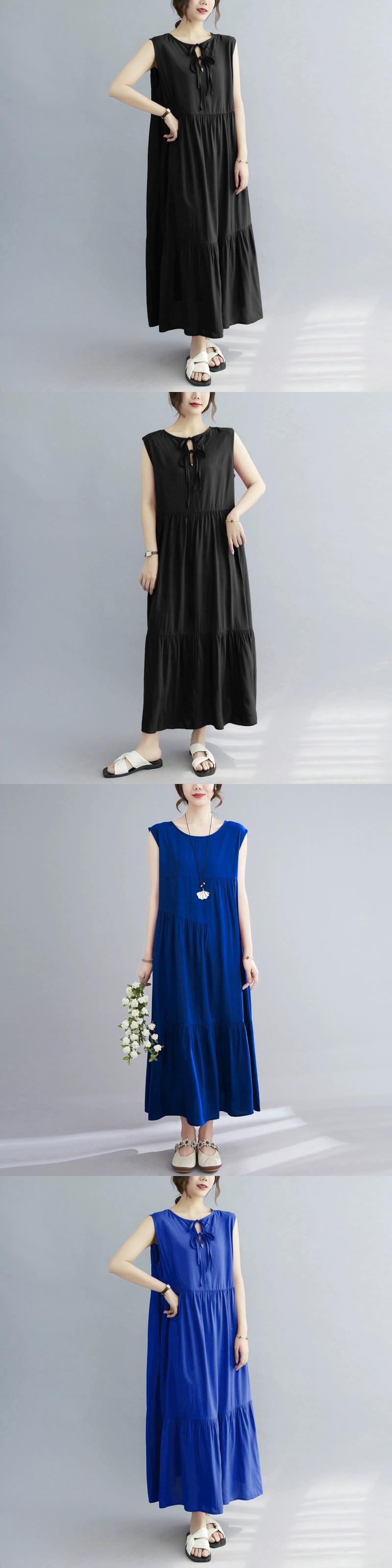 夏用ノースリーブベスト・レースアップ・着痩せ・ゆったり・大きいサイズワンピースの実物 大きめサイズ サマー 夏物 cat888488396185