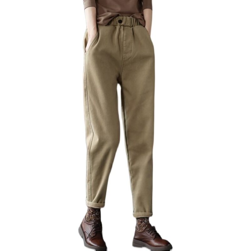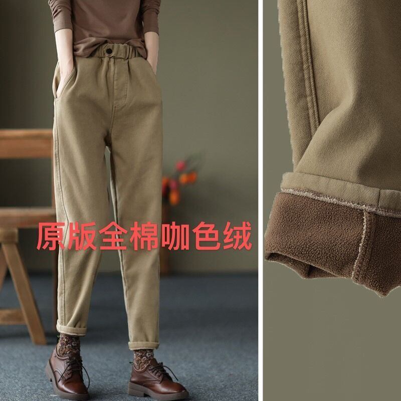非本物の大きいサイズのカジュアルパンツの女性の冬の太ったmmのルーズプラスベルベットのストレートパンツがスリムで小さな足のハーレムパンツに見えます 大きめサイズ ウィンター 冬物 cat870431332685