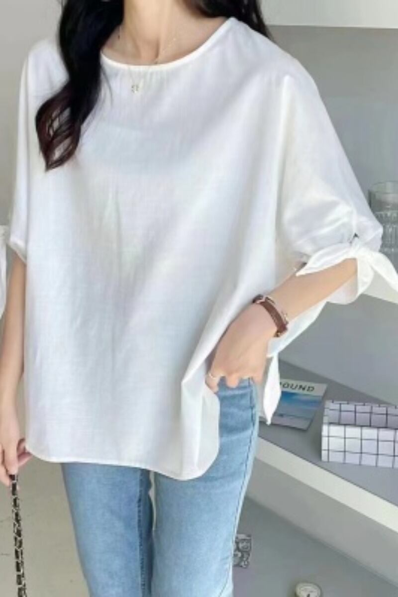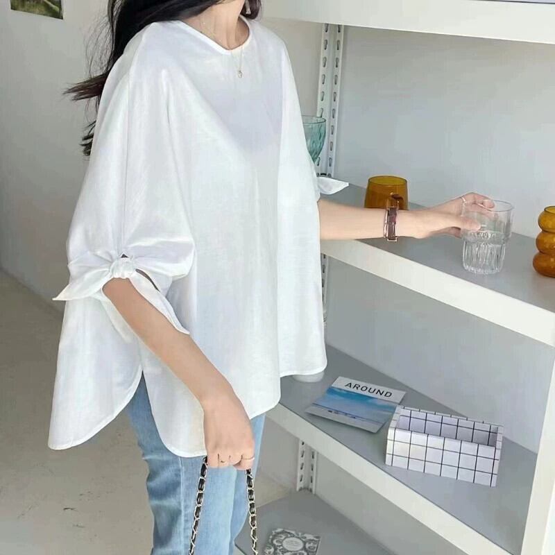 新しい夏のファット、Eign スタイル、年齢を軽減する、多用途のルーズなソリッドカラーのシャツ、半袖トップの女性のバージョン サマー 夏物 cat848507111528