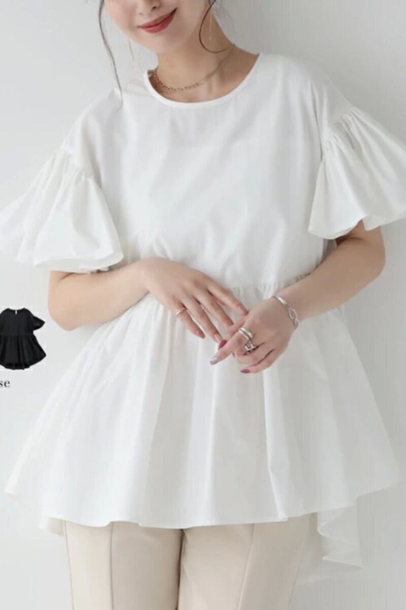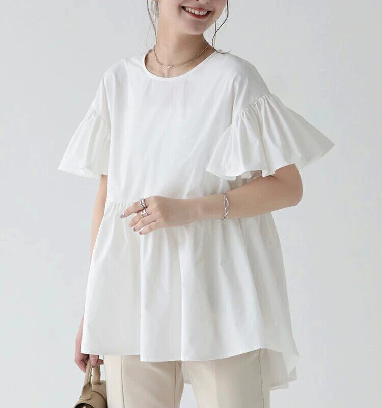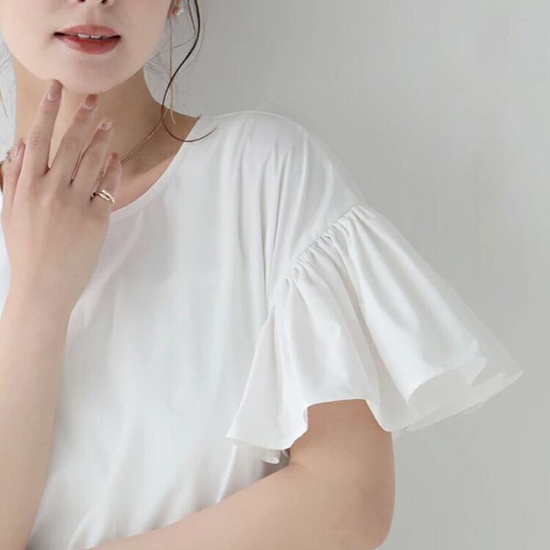 これらおよび新製品、夏のベルスリーブラウンドネックシャツ、女性のゆったりしたデザイン、ニッチな女性のトップス、クロスボーダースタイル サマー 夏物 cat811407249070