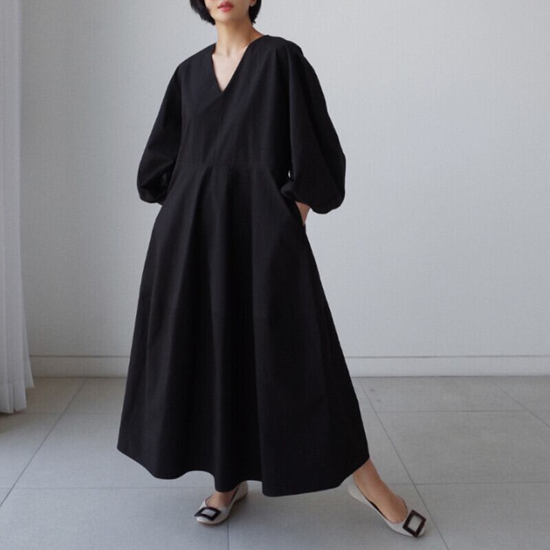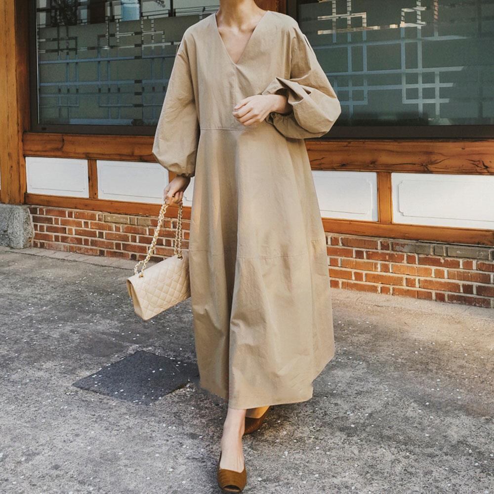 2022 春 V ネックドレスレディース膝上ロングゆったり大きいサイズランタンスリーブドールドレス 大きめサイズ スプリング 春物 Vネック cat896386727887