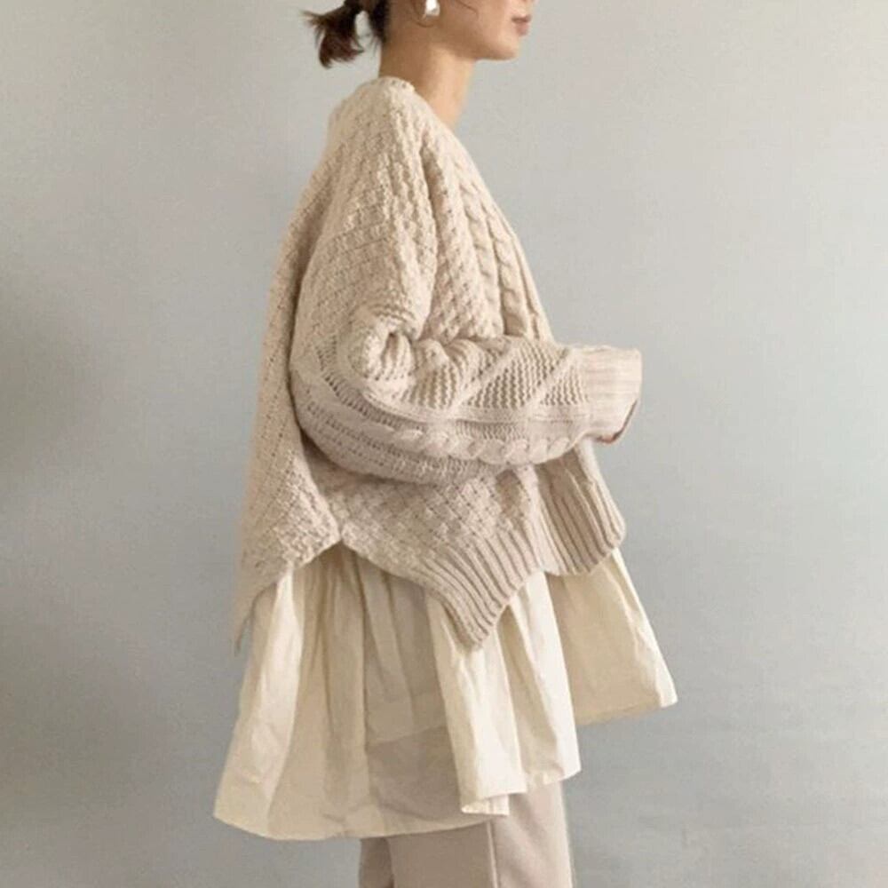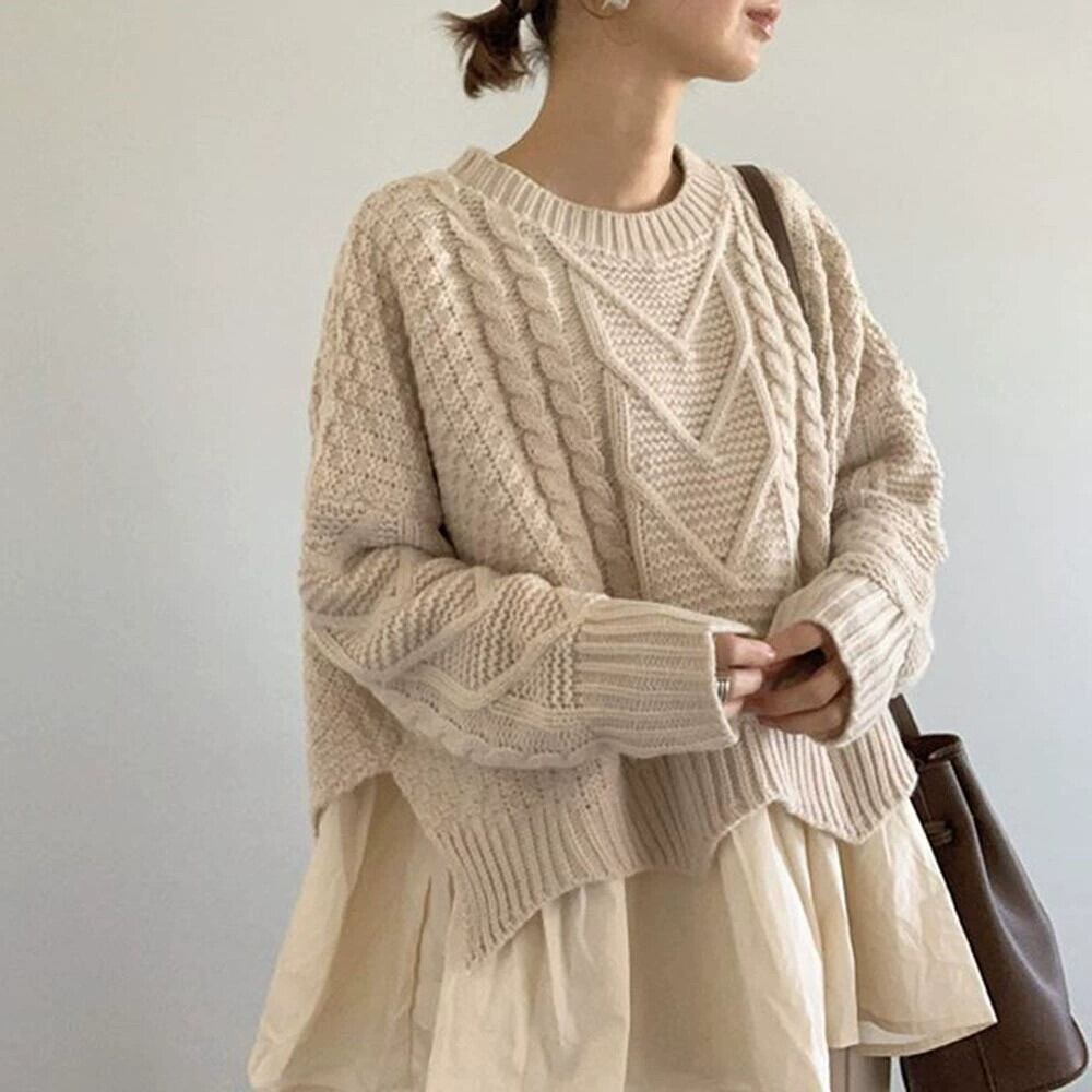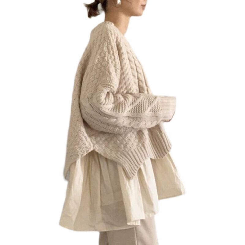 21 秋の新しい ese とスタイルの通勤裾ルーズラウンドネック無地プルオーバーニットセーター オータム 秋物 Oネック ソリッドカラー cat853249922670