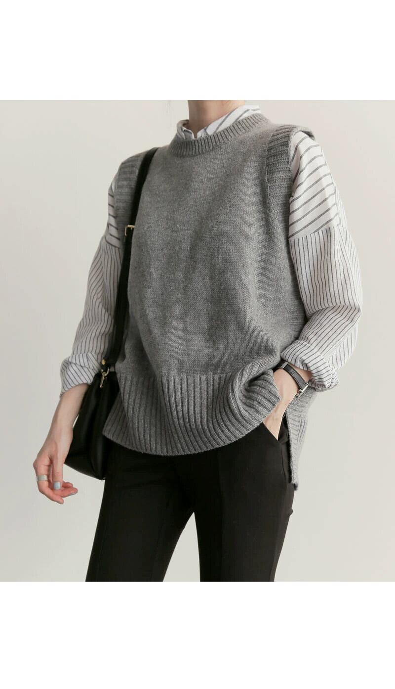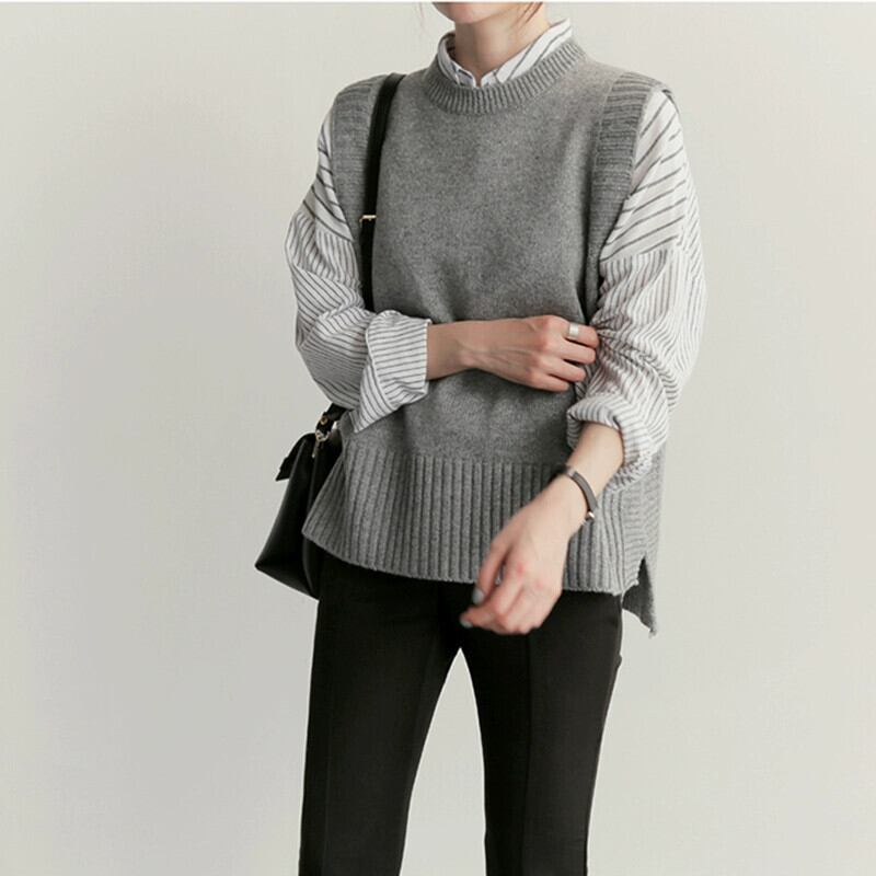 ベスト女性秋と冬 2021 新スタイルルーズラウンドネックノースリーブチョッキセーターセーターベスト多用途ベスト オータム 秋物 ウィンター 冬物 Oネック cat810898445295